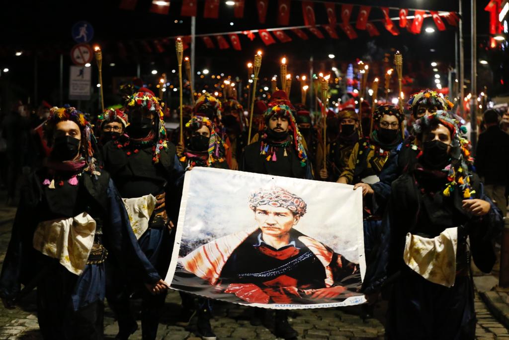 Ellerinde cumhuriyet ateşini simgeleyen meşaleler taşıyan efelerin başı çektiği kortej Kıbrıs Şehitleri Caddesi girişinden Cumhuriyet Meydanına yürüdü.