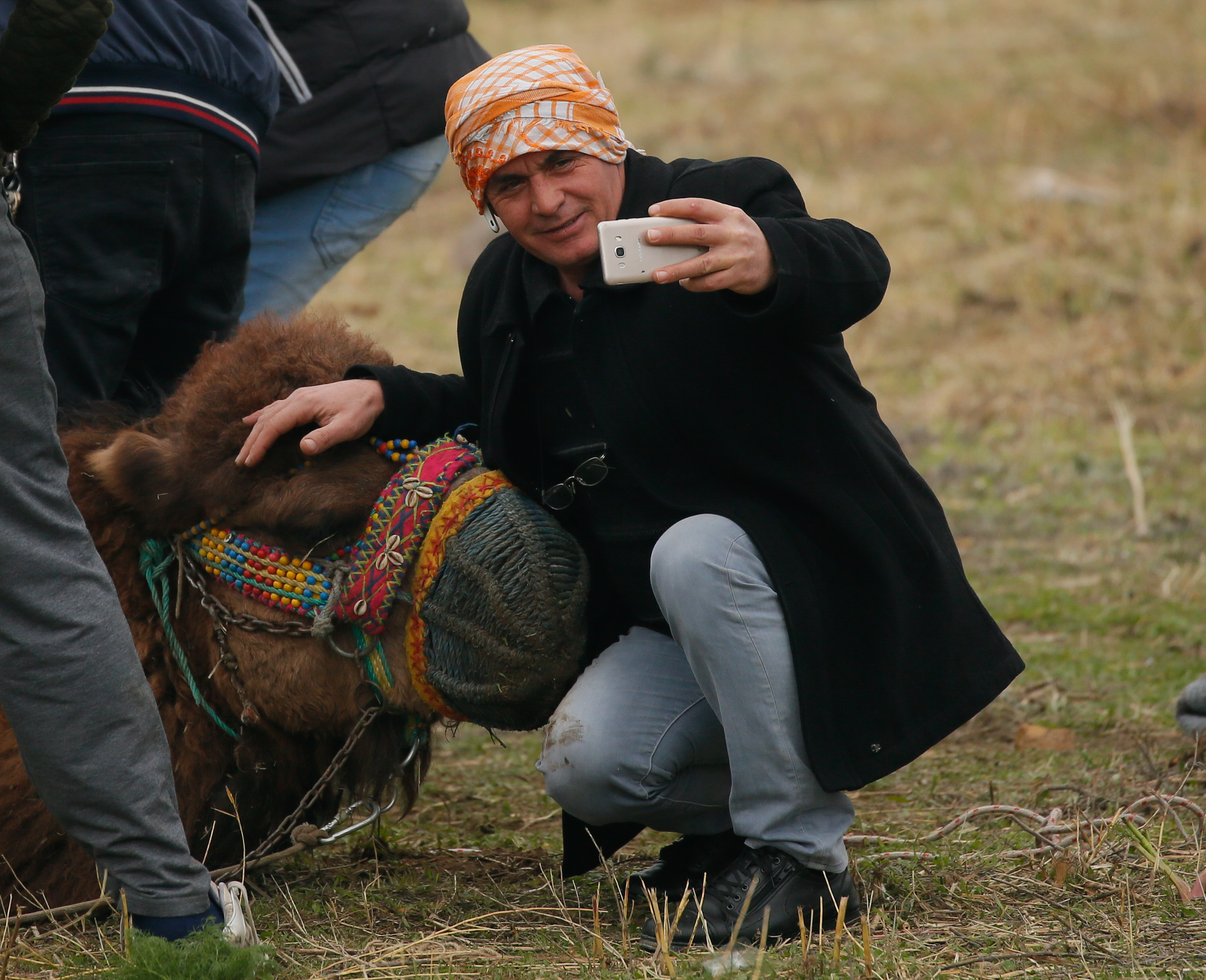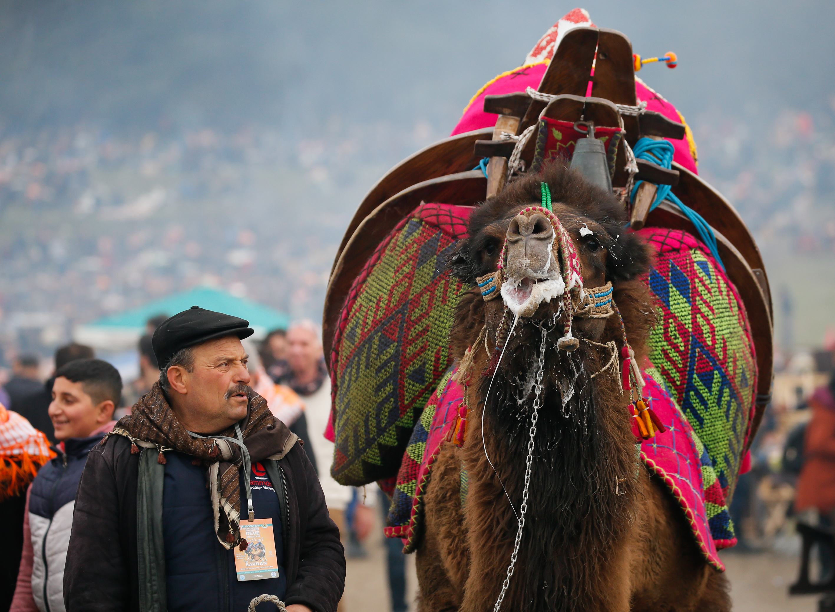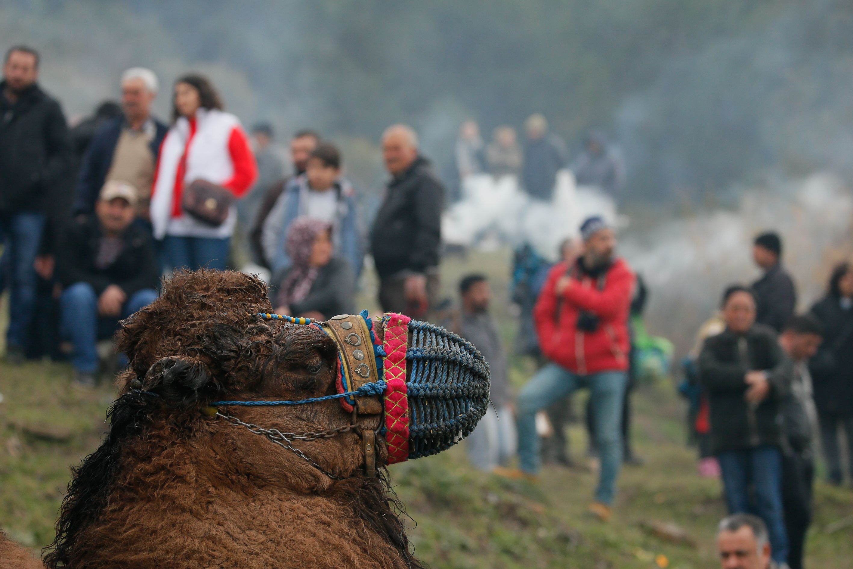 Deve güreşi meraklıları güreşleri izlemek için sahayı çevreleyen yamaçları, günün erken saatlerinden itibaren doldurdu.