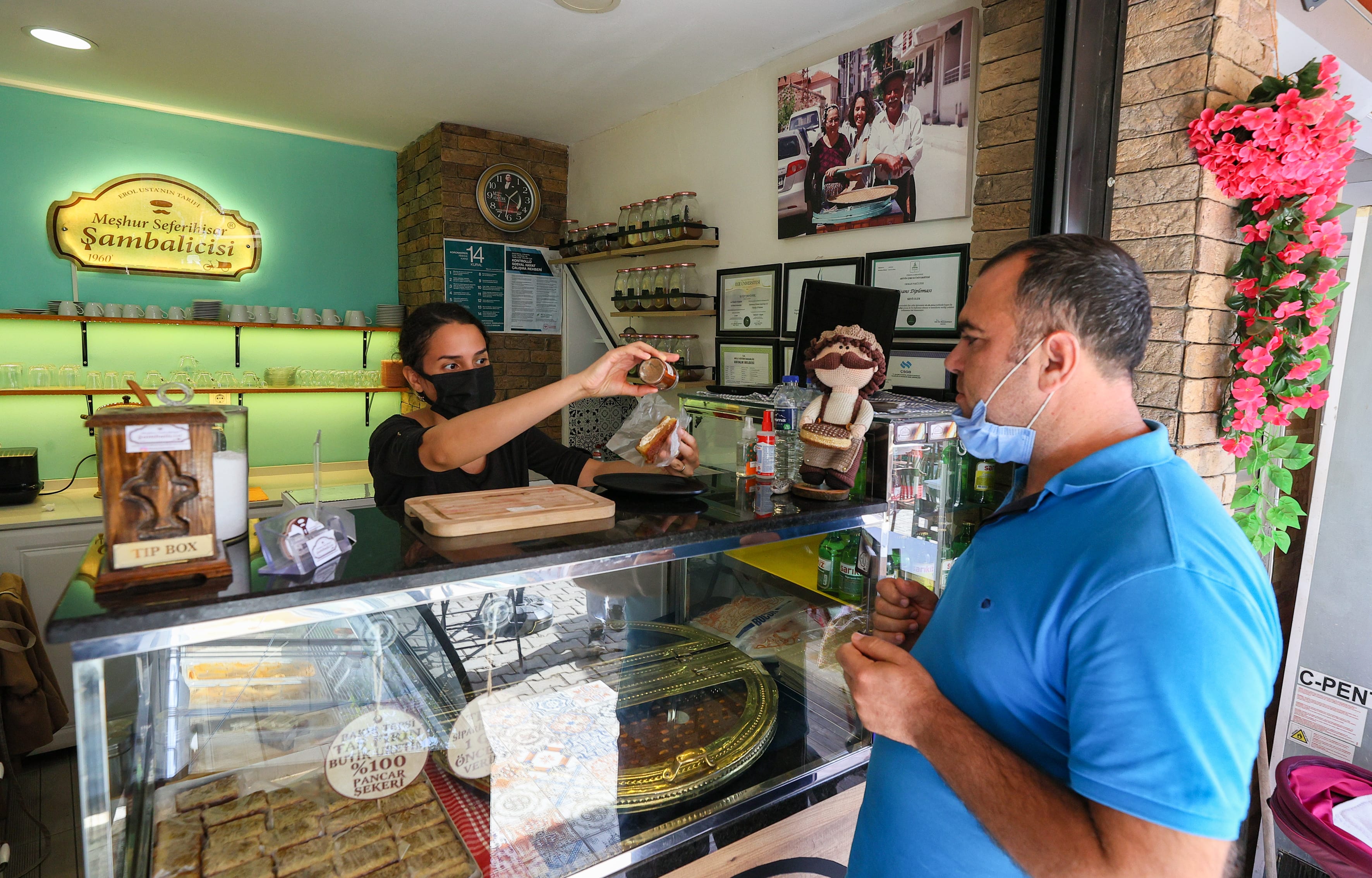 Şambali yemek için işletmeye gelen Zafer Koşar, Şentürk'ten ilk olarak seyyar tezgahta satış yaparken tatlı aldığını söyledi.