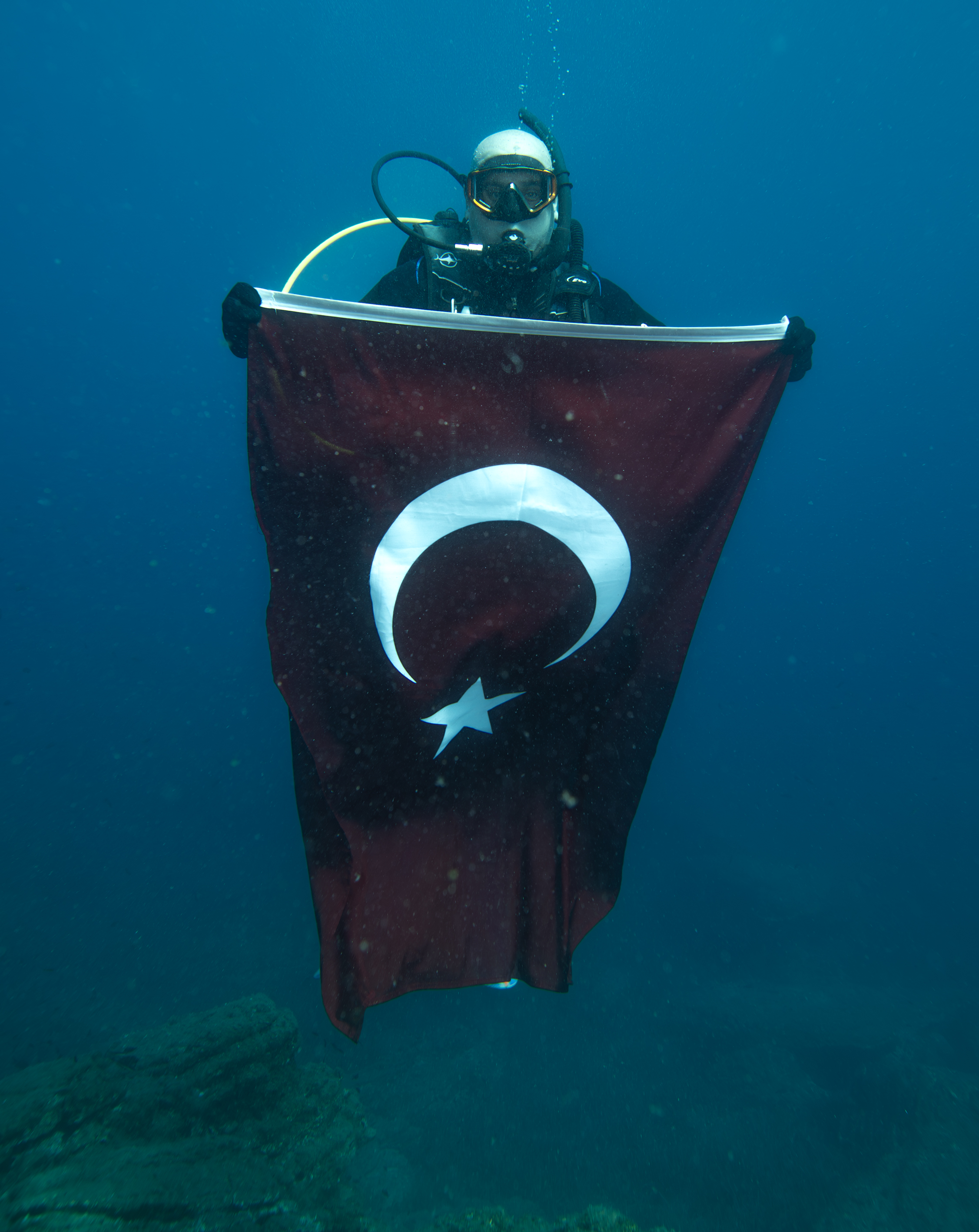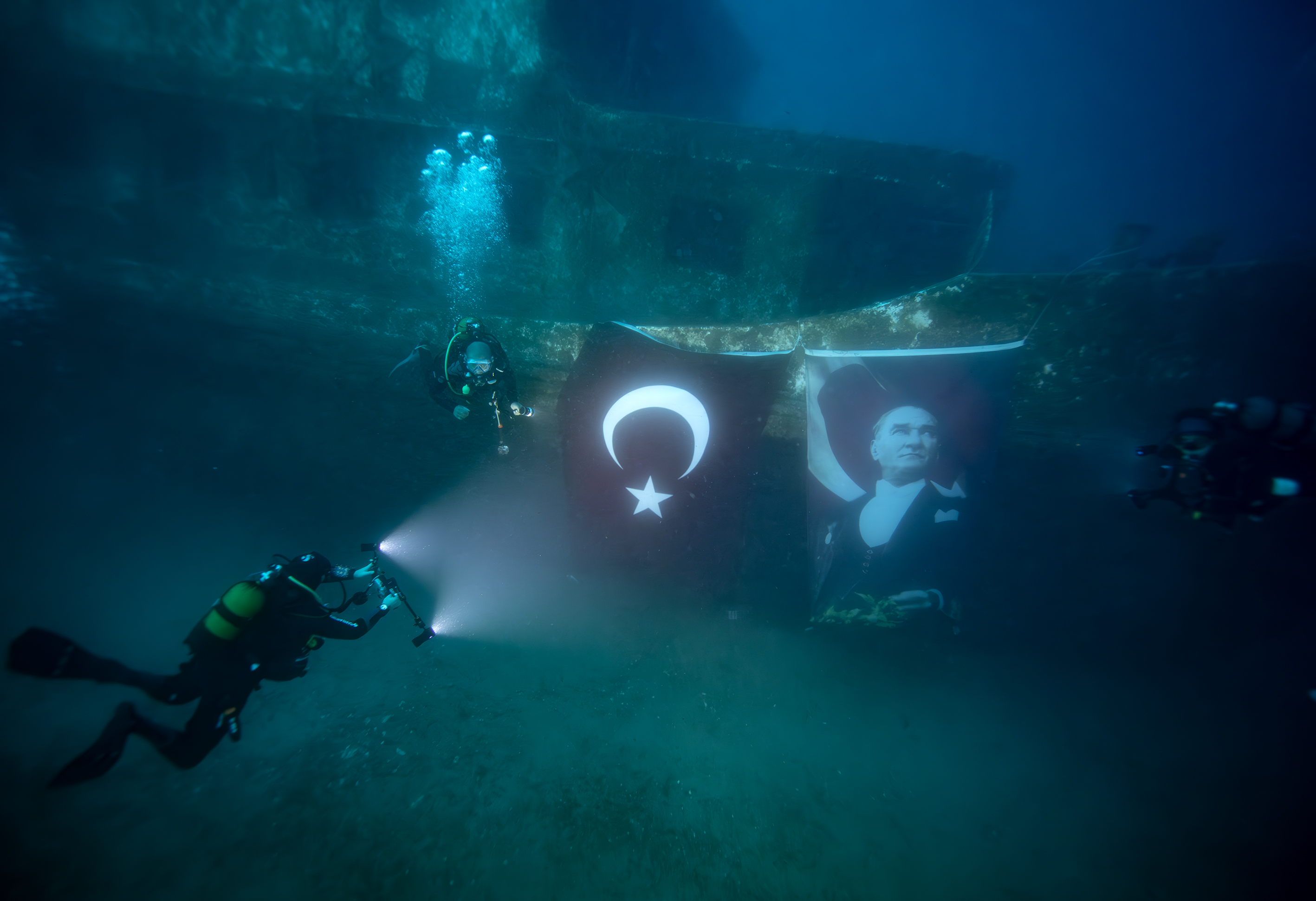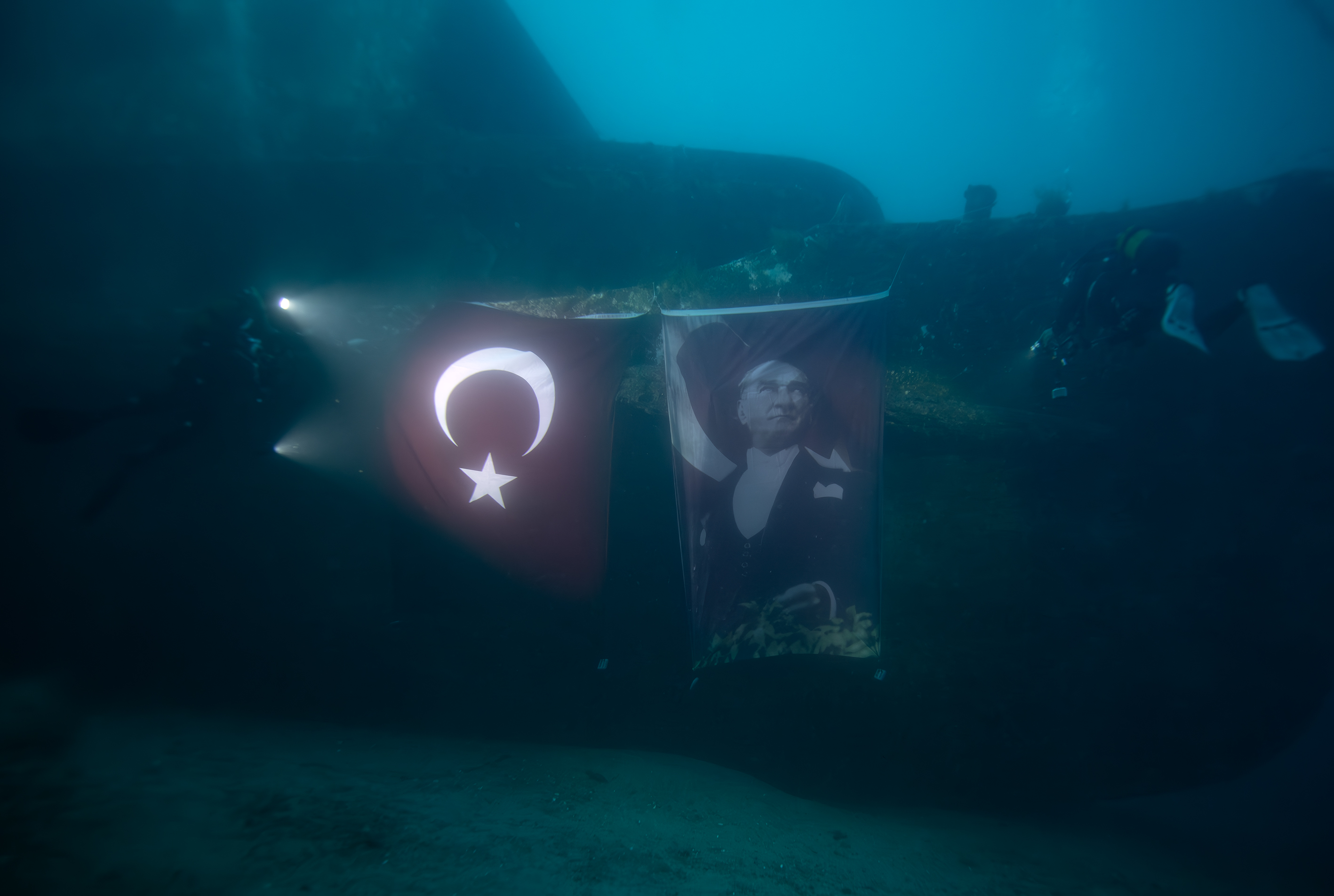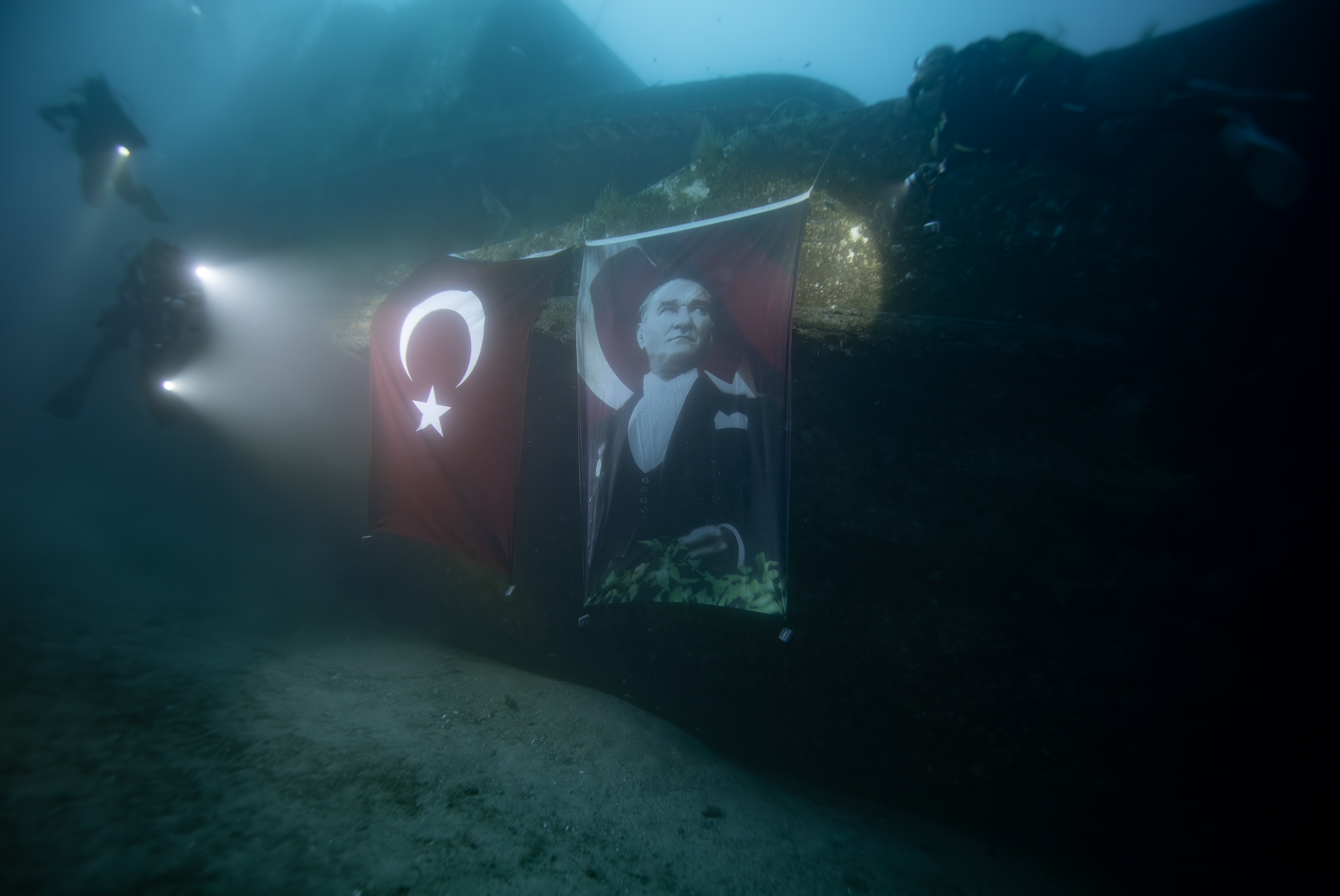 İzmir'in Karaburun ilçesinde bir grup dalgıç, Cumhuriyet'in 100. yıl dönümü etkinlikleri kapsamında su altında Türk bayrağı ve Atatürk posteri açtı.