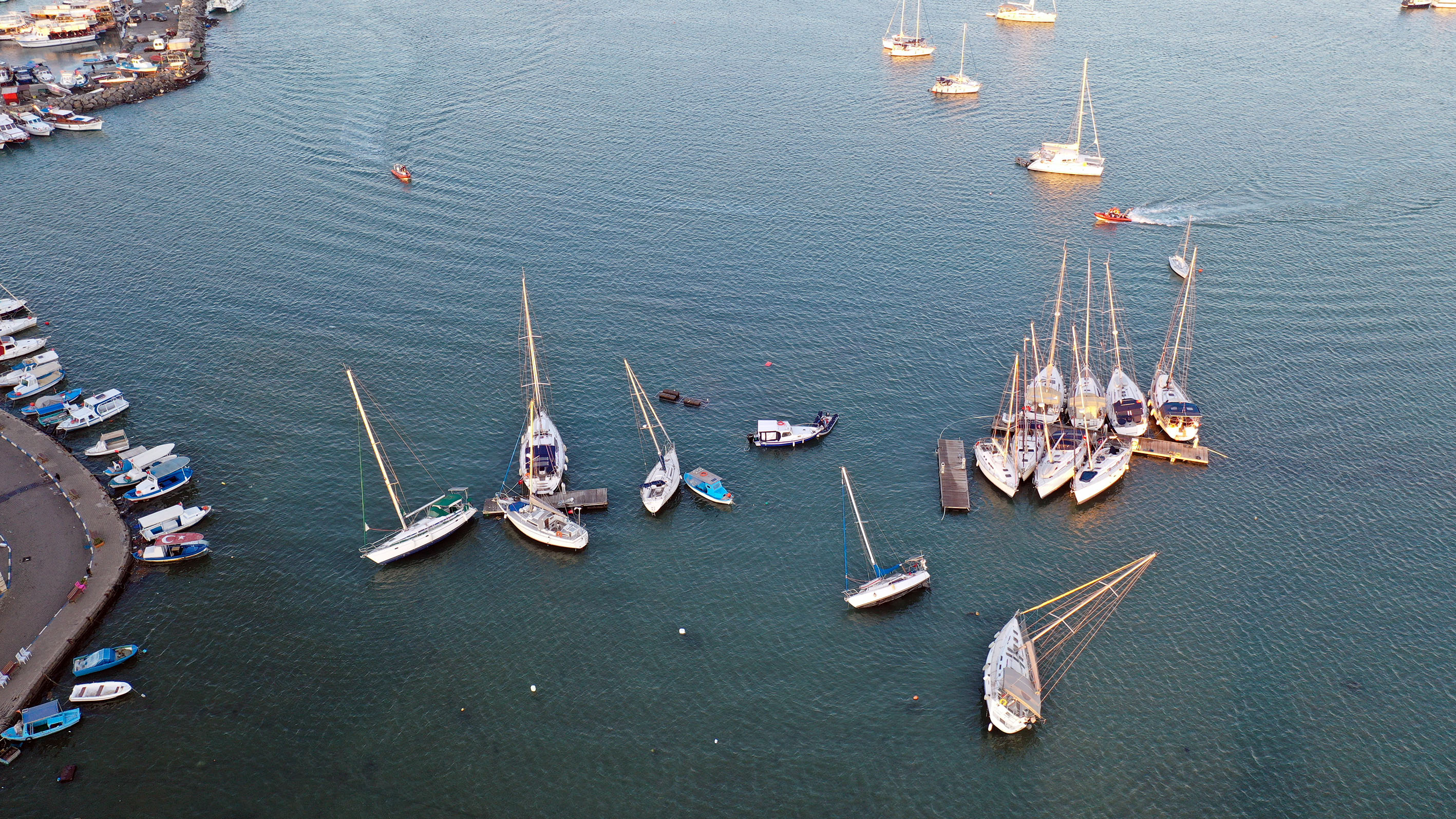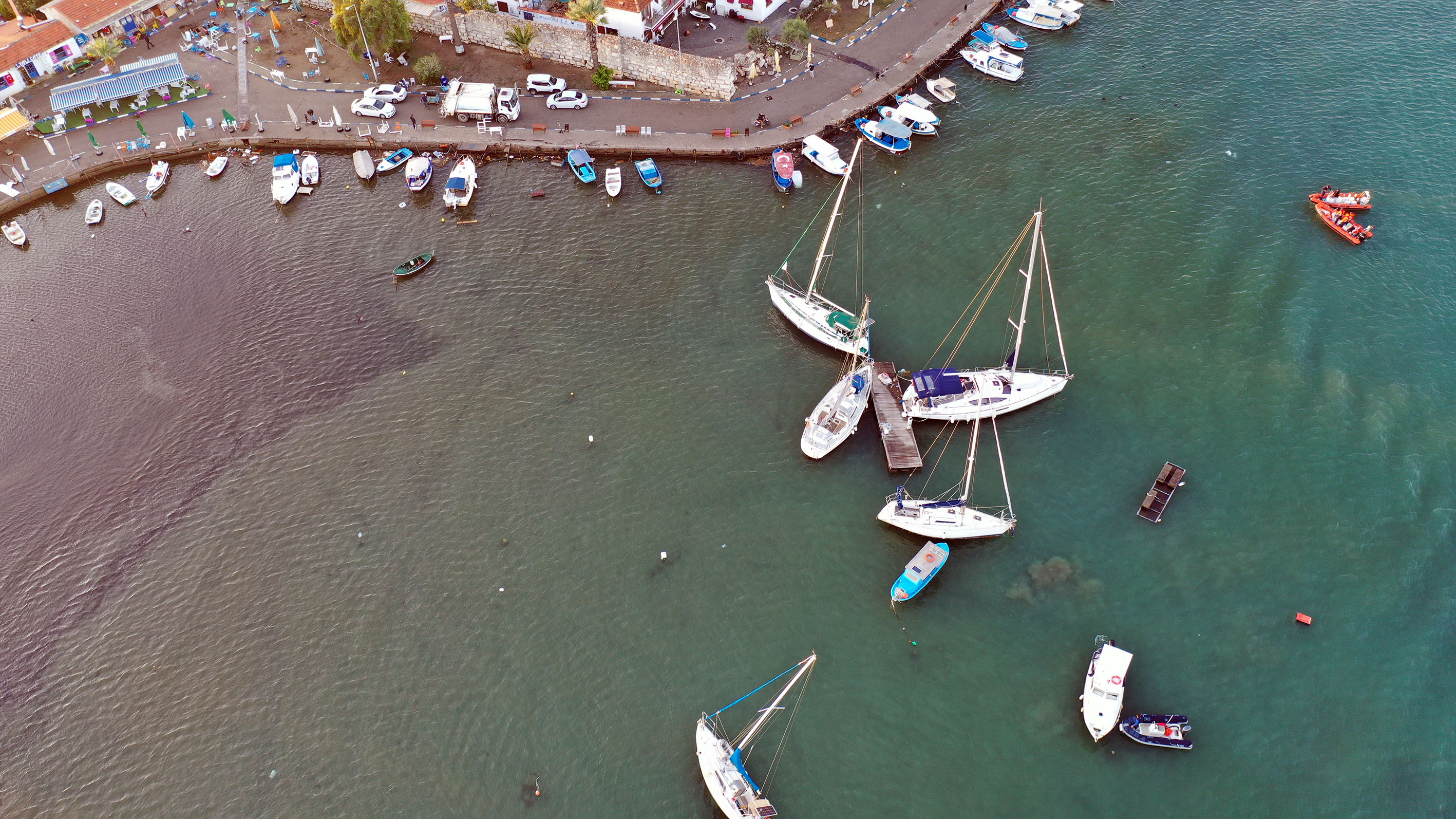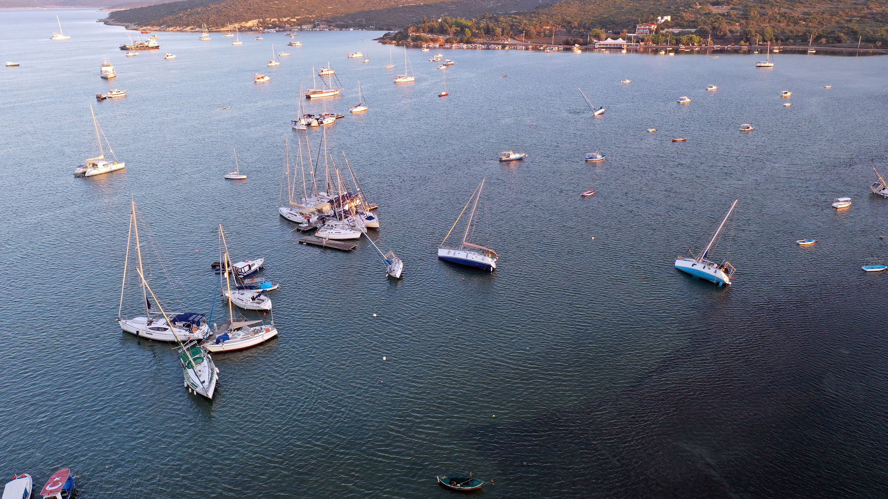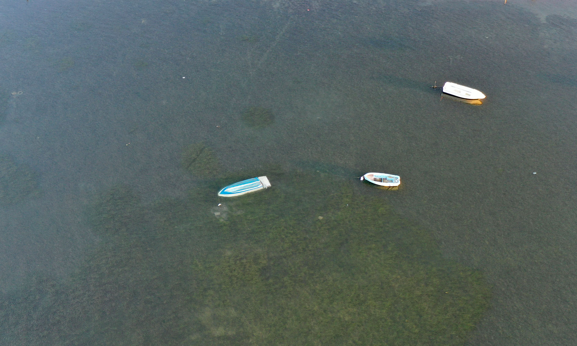 Yan yatan tekneler ve sulara kapılan bazı araçlar, AA ekibince drone ile görüntülendi.