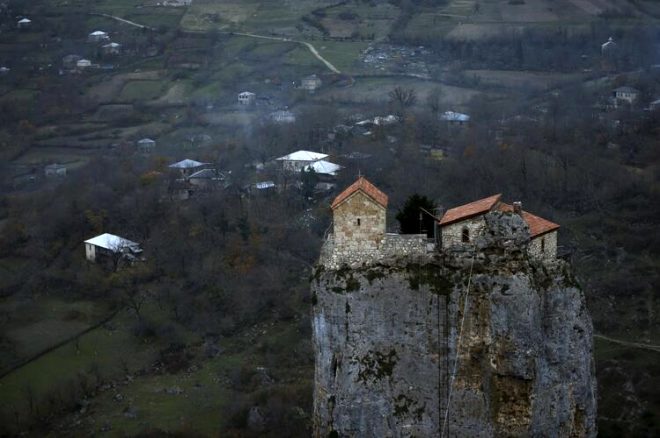 Katskhi Dikit'in en tepe kısmındaki manastırda yaşayan Qavtaradze bu ilginç yerde bulunmaktan mutluluk duyduğunu söylüyor.