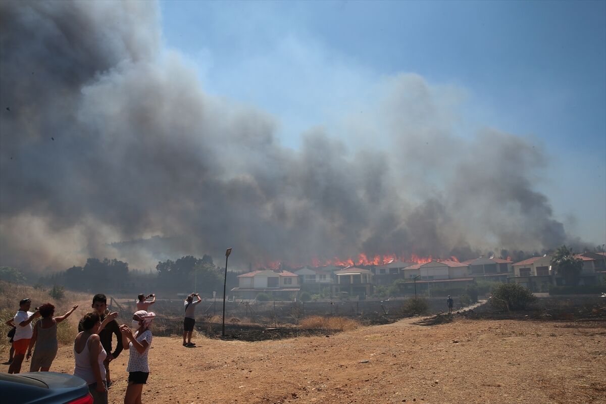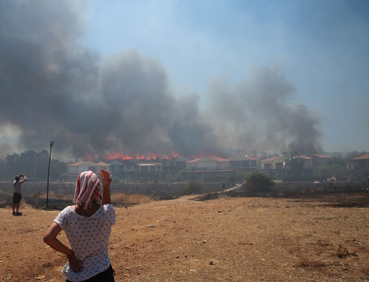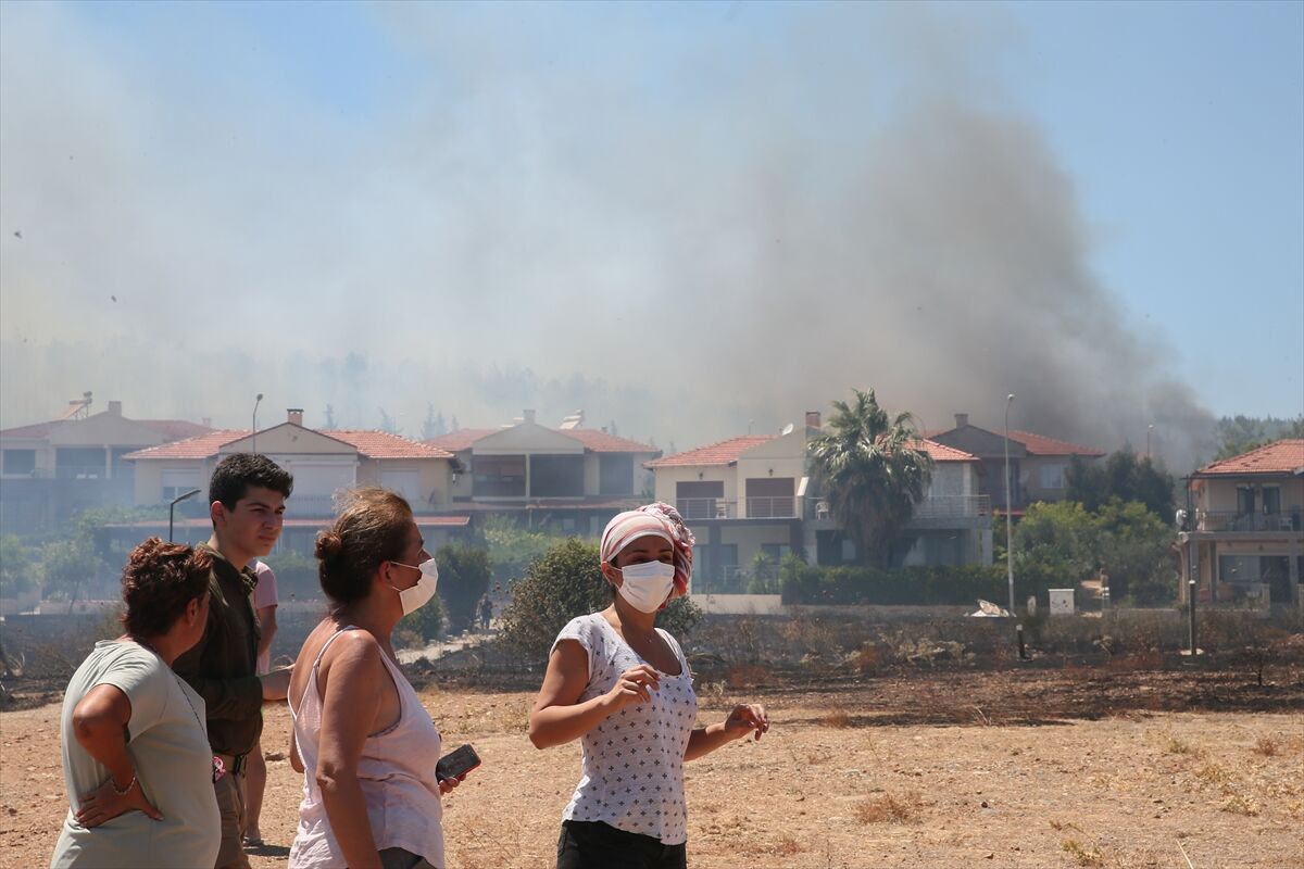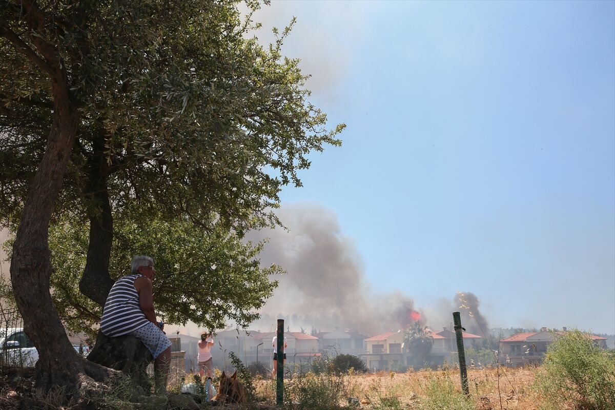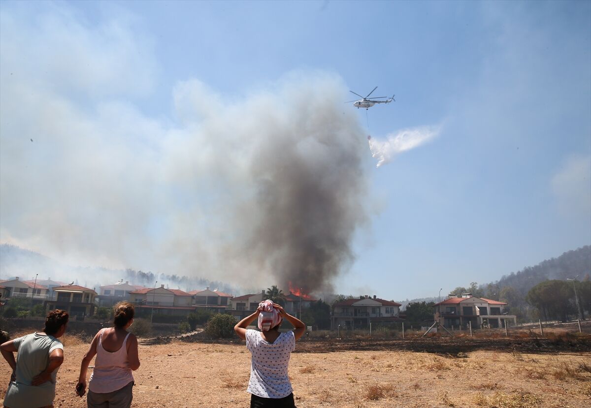 Evlerini boşaltan vatandaşlar endişeyle söndürme çalışmalarını izledi.