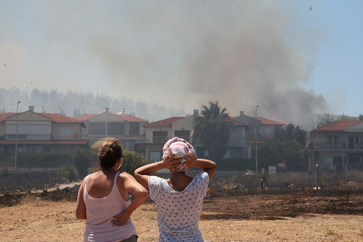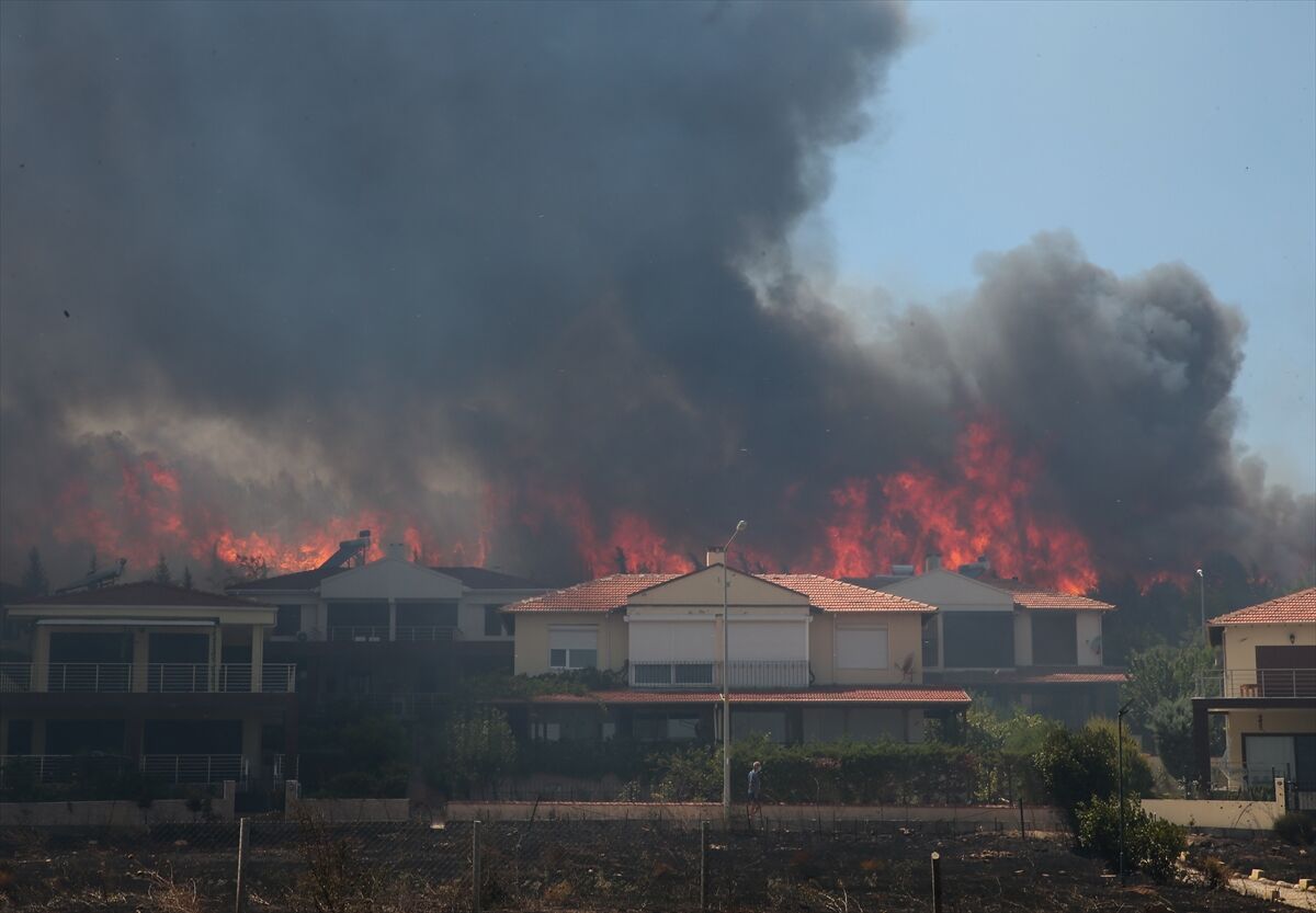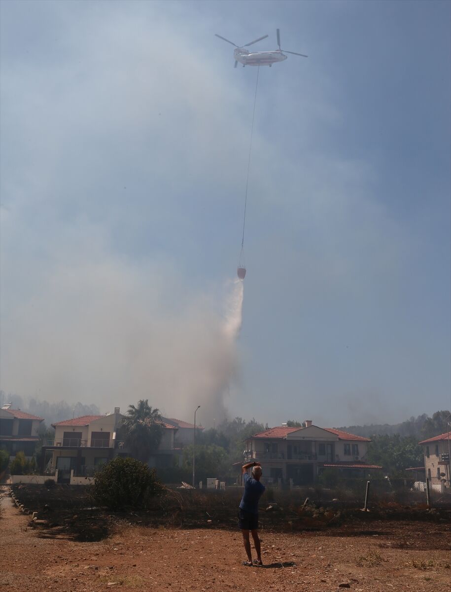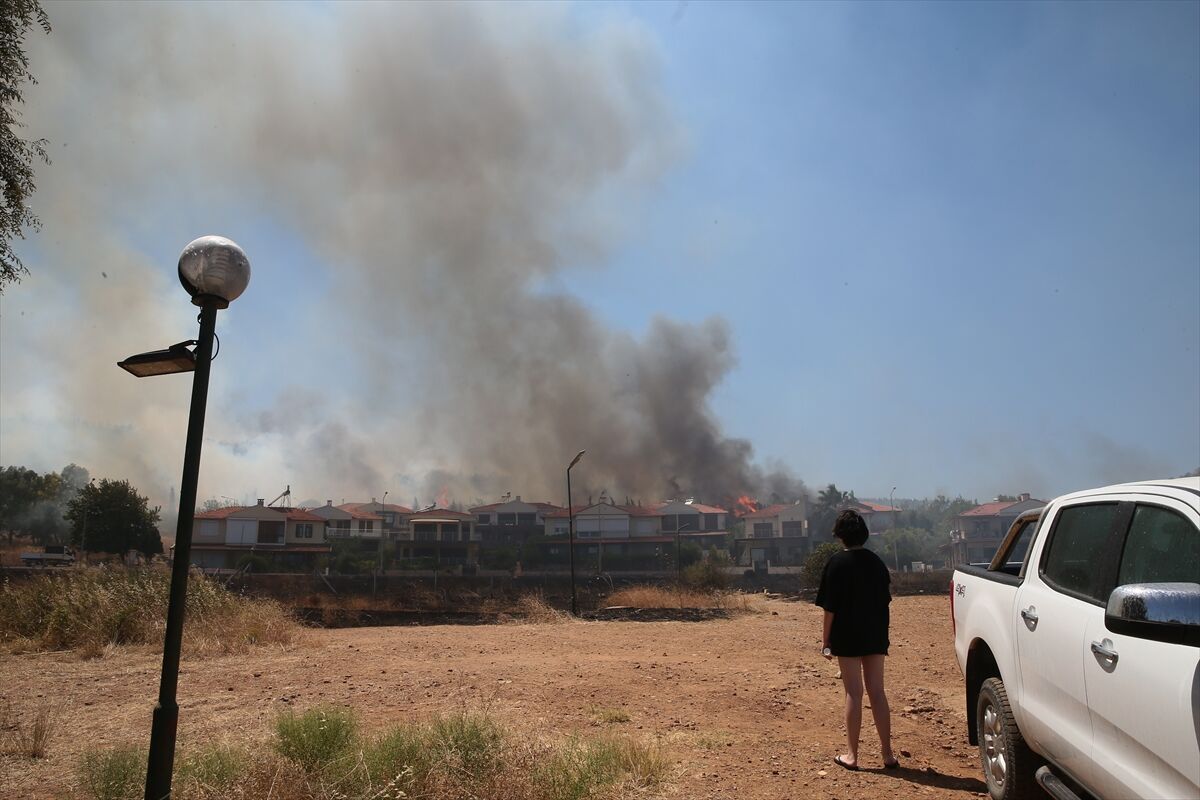Evlerini boşaltan vatandaşlar endişeyle söndürme çalışmalarını izledi.
