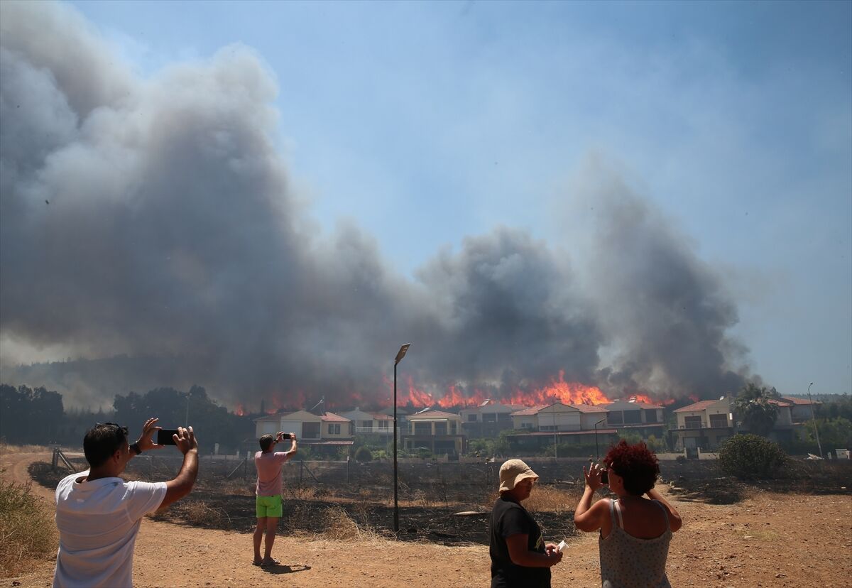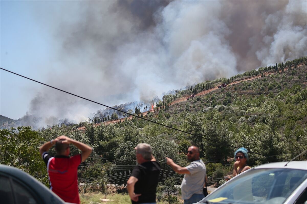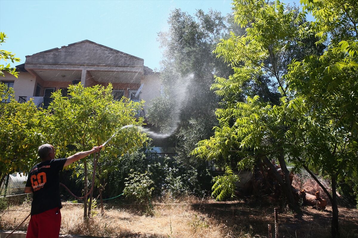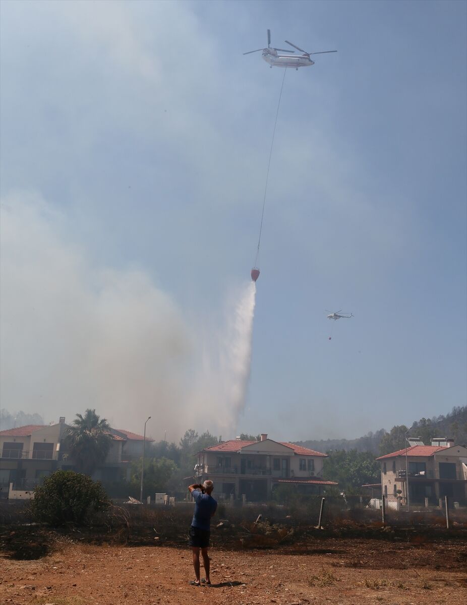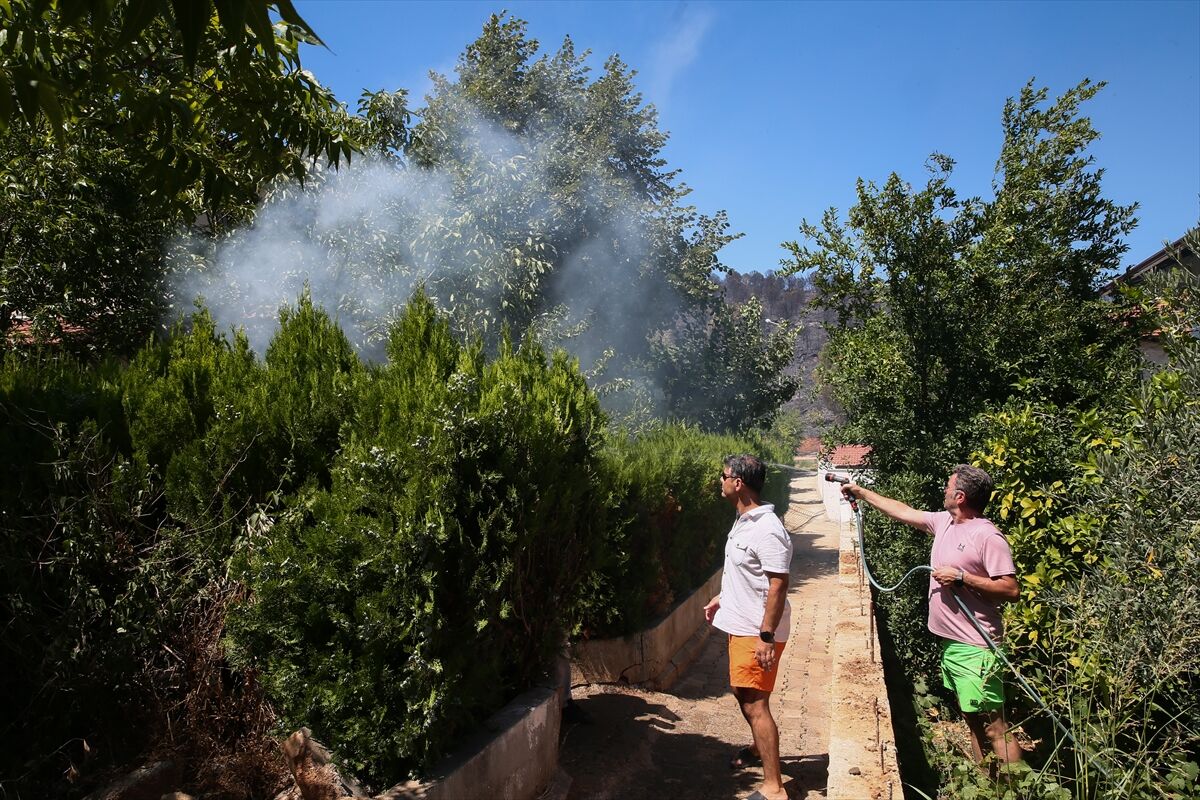 Evlerini boşaltan vatandaşlar endişeyle söndürme çalışmalarını izledi.