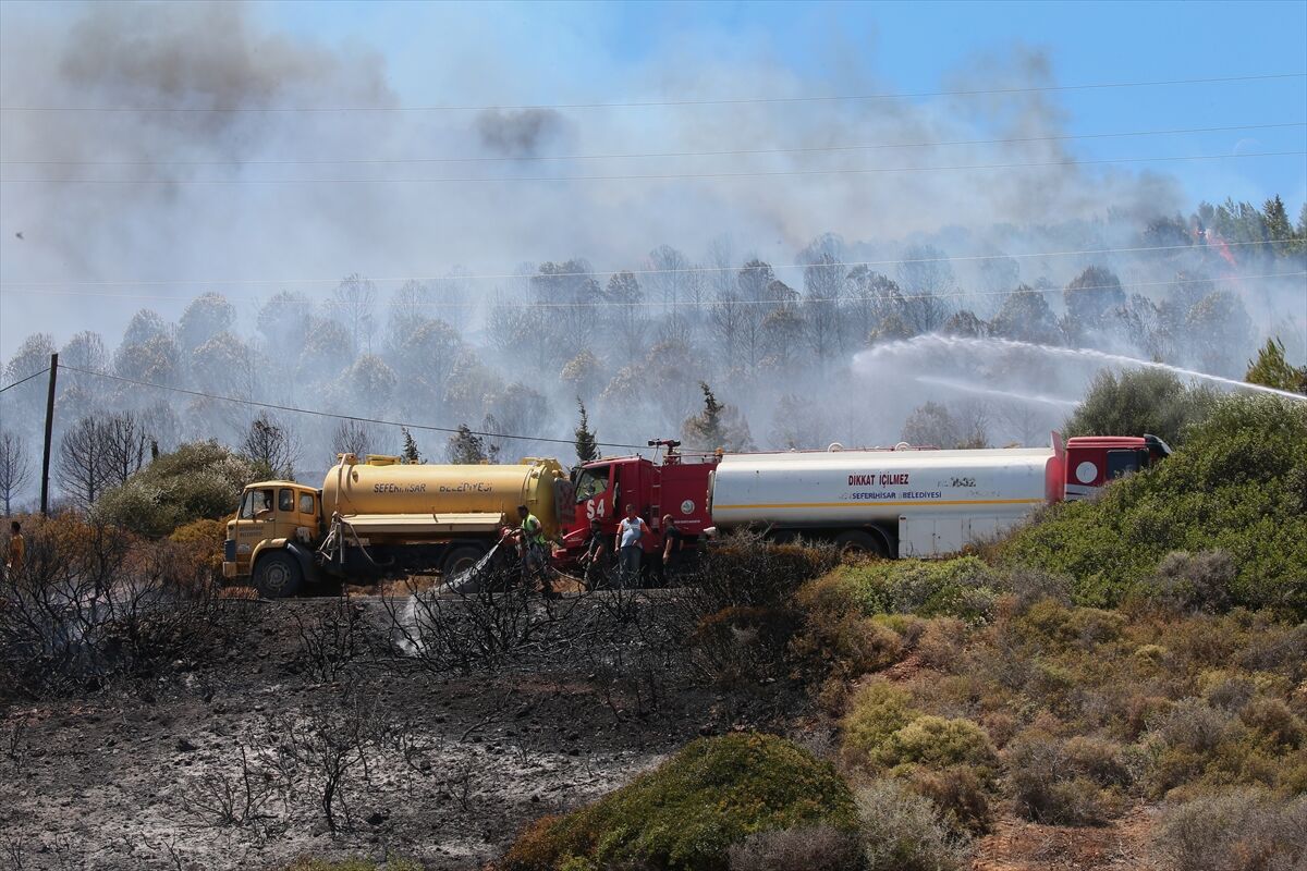 Doğanbey mevkisindeki ormanlık alanda da yangın çıktı.