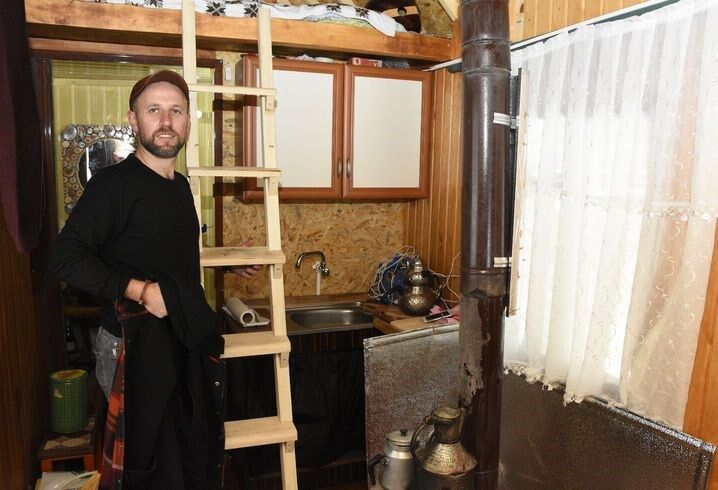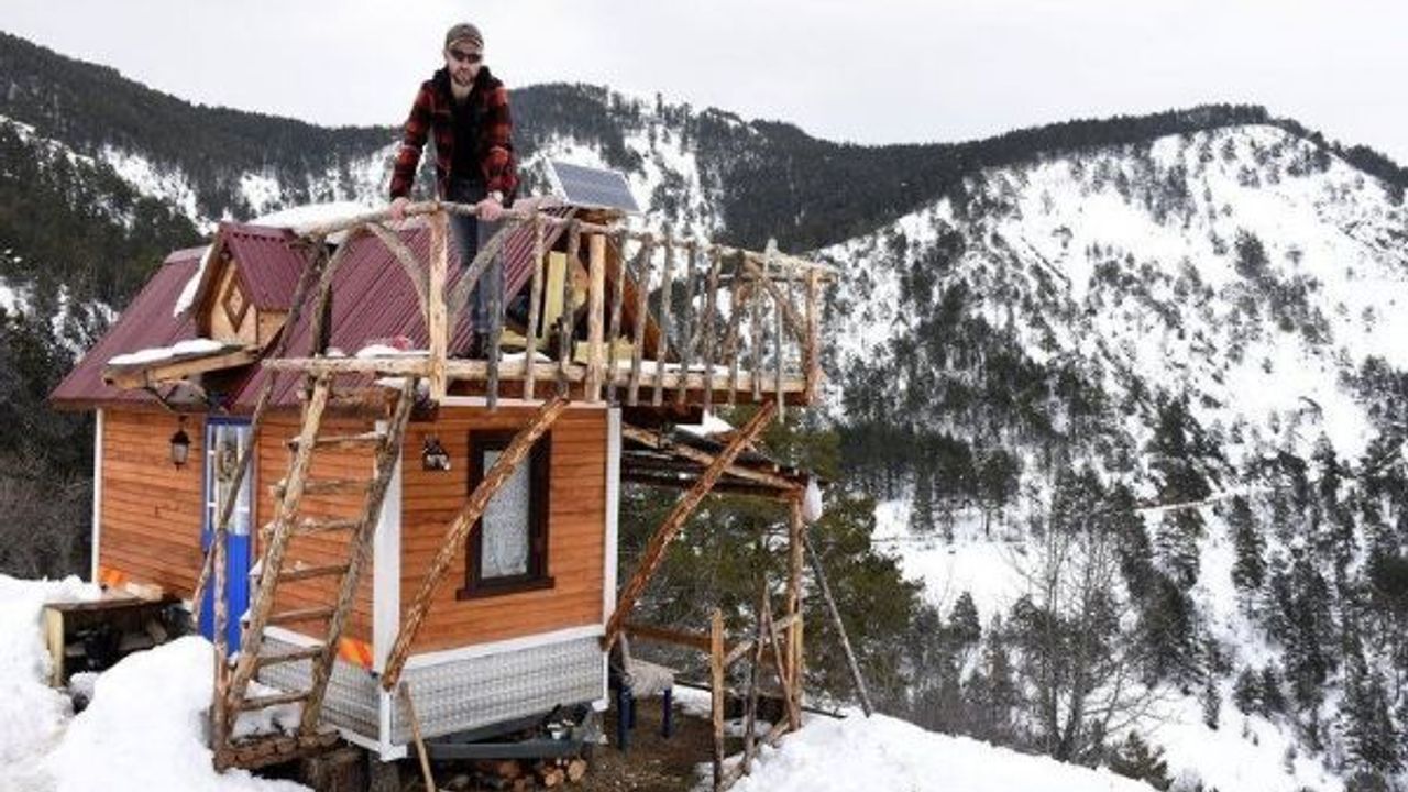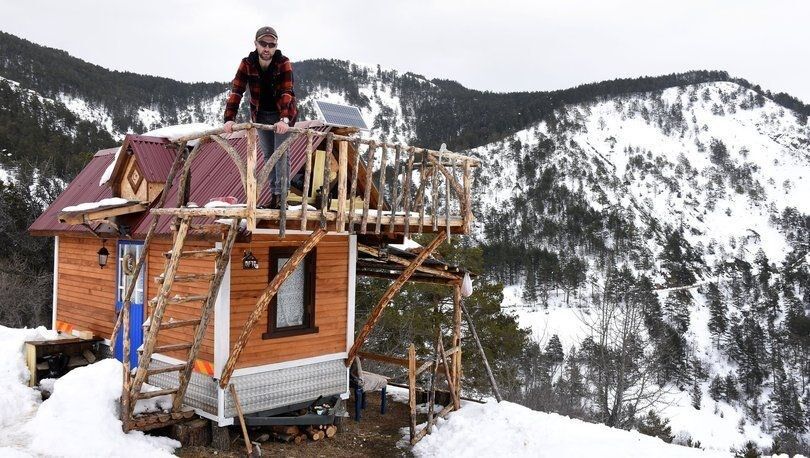 Gümüşhaneli Emre Coşkun, doğal yaşam duyduğu sevgi dolayısıyla doğada zaman geçirebilmek için 6 kişinin konaklayabileceği ve güneş enerjisiyle elektriğini üretebilen ahşap karavan yaptı.