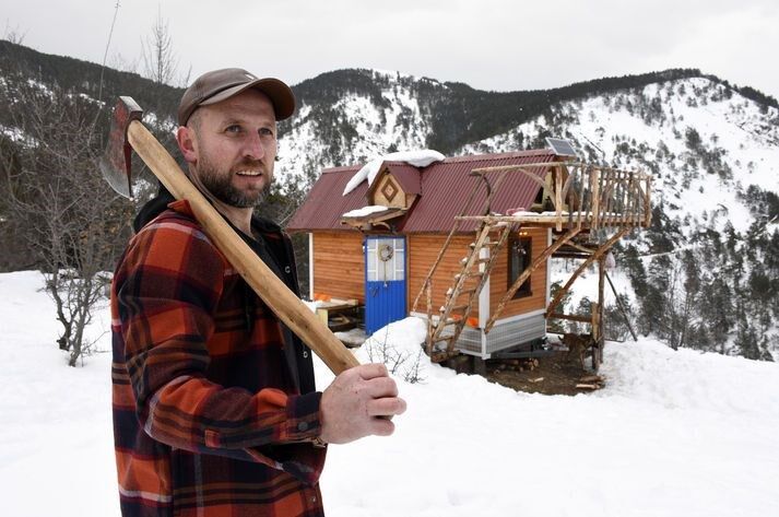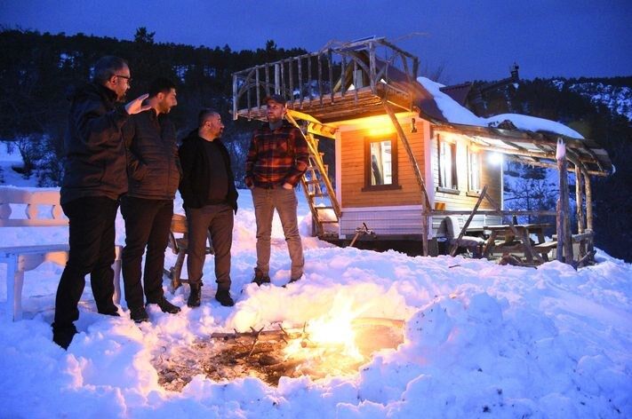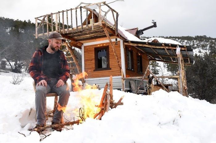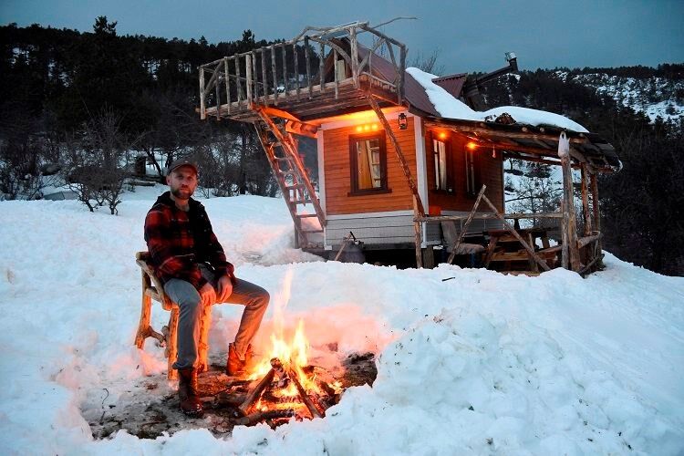 Karavanla karlı doğada dingin bir yaşamın tadını çıkaran 38 yaşındaki Coşkun, zaman zaman misafir de ağırlıyor.