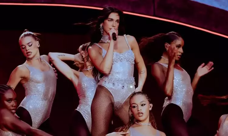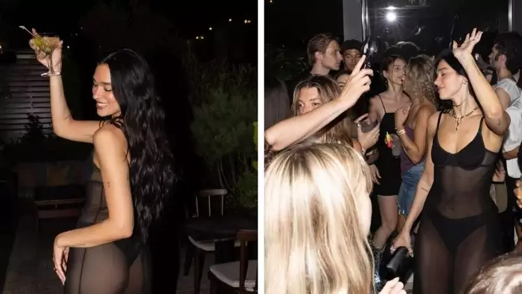 Partide Dua Lipa, vücudunu tamamen gösteren cesur ve transparan bir elbise giydi. Dua, Instagram'dan parti fotoğraflarını paylaştı.