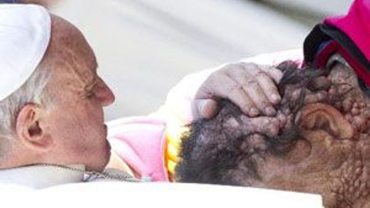 Papa’nın sarıldığı adamın, çok sayıda dış tümöre, çift görmeye, hatta kansere yol açabilen ‘Nörofibromatoz’ adlı, nadir ve acı verici bir hastalıktan mustarip olduğu öğrenildi.