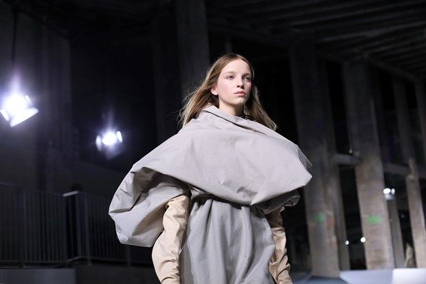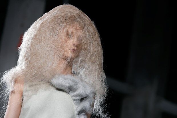 Modellerin başlarına geçirelen dev saç yumakları da, bol kesimli kıyafetlerin tamamlayıcı unsuru olarak düşünülmüştü.