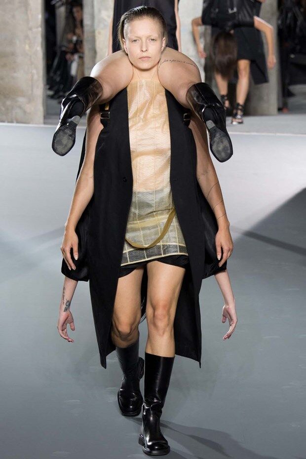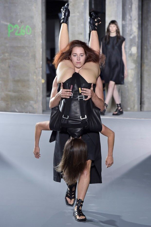 Rick Owens'ın 2017 sonbahar-kış koleksiyonu, tasarımlardan çok, modacının kullandığı aksesuarlar ve sunum itibarıyla tartışma yarattı. Çünkü Owens podyumda yine sıradışı bir sunum denemiş ve bazı modellerin birbirini çanta gibi taşımasını sağlayan bir koreografi uygulamıştı.