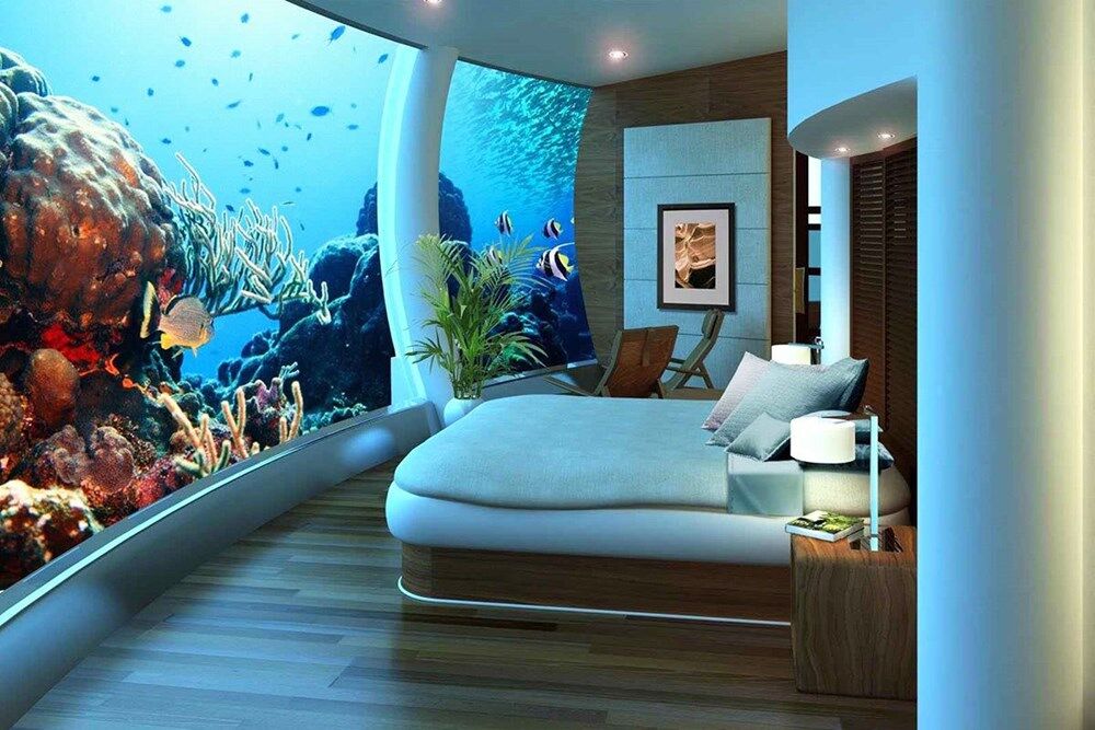 İki odası bulunan otelde, odaları çevreleyen pencerelerden sayısız deniz canlısıyla selamlaşmak mümkün.