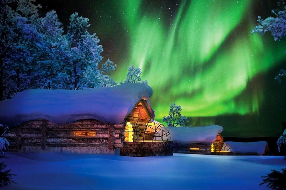 Kuzey Kutup Dairesi’nin 250 km uzaklığında, Finlandiya’da bulunan Kakslauttanen’de cam tavanlı Eskimo kulübelerinde uzanarak, bir gökyüzü fenomeni olan muhteşem Aurora Borealis karşısında uykuya dalabilirsiniz.