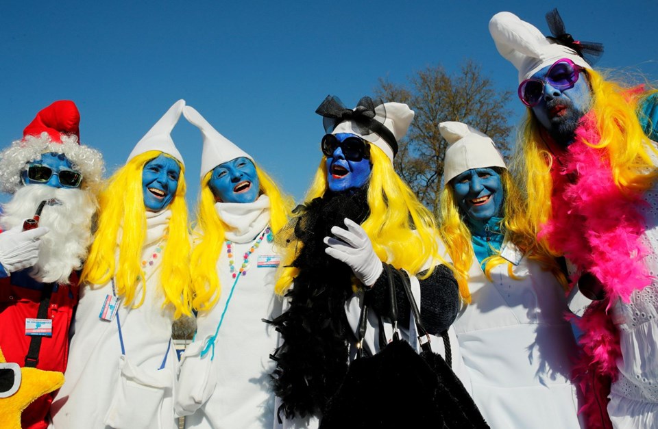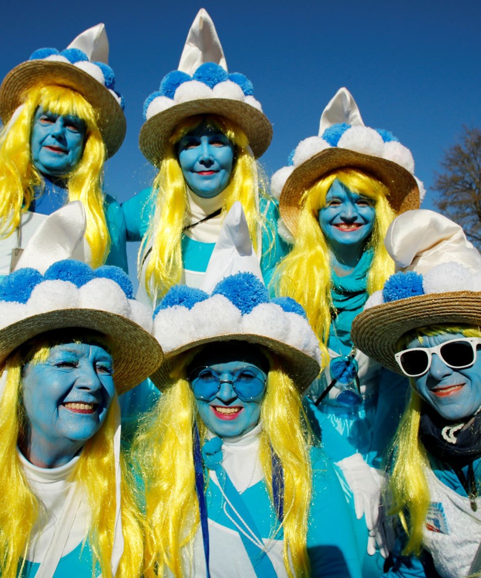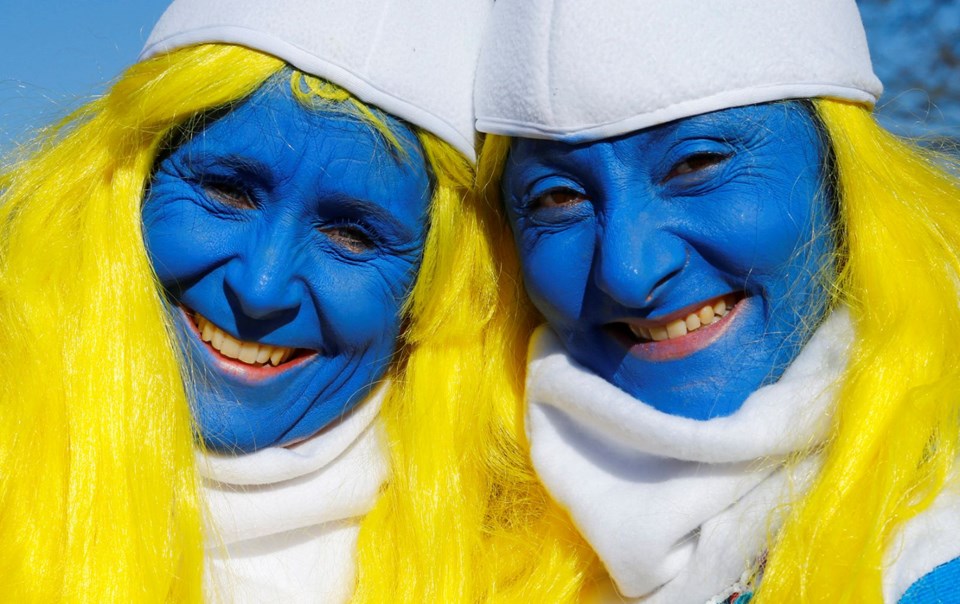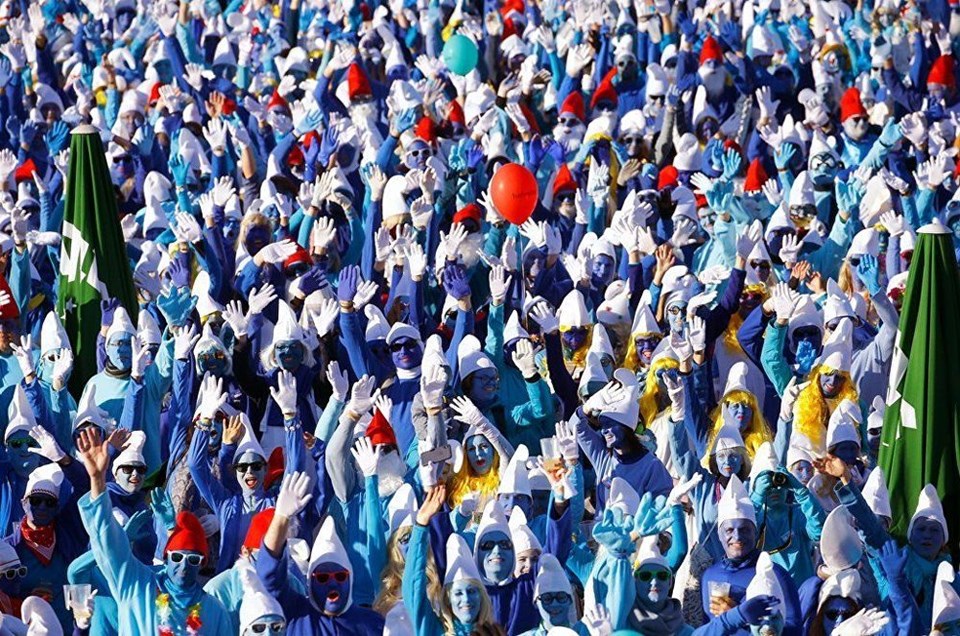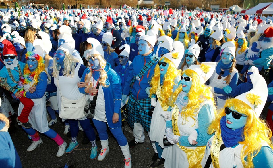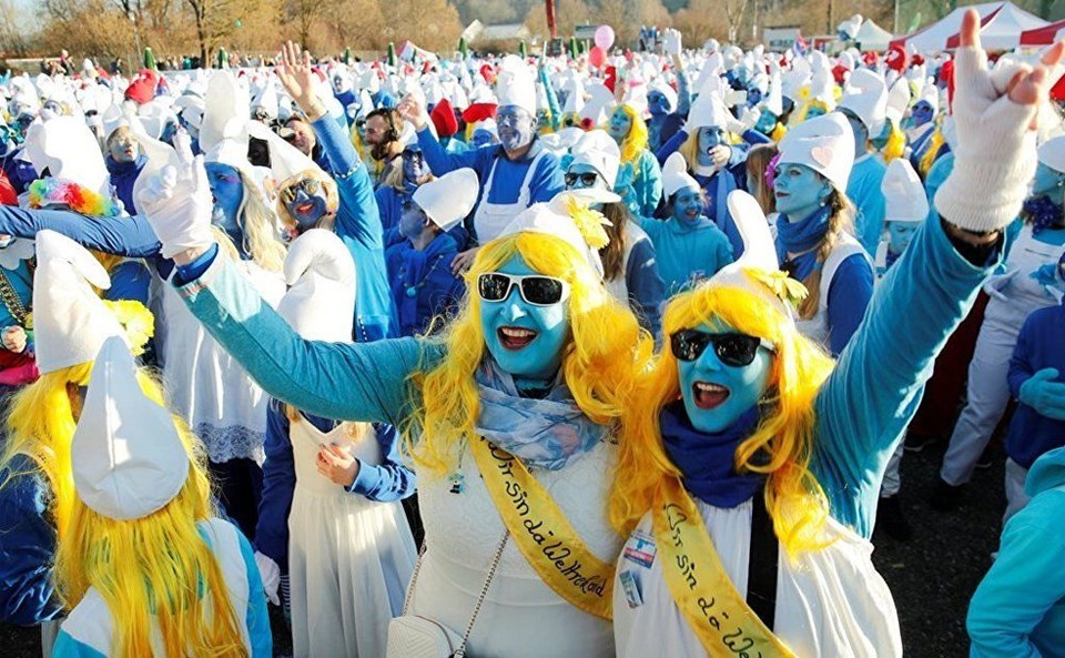 Almanya'nın Lauchringen kentinde 2 bin 762 kişi dünyanın en büyük Şirinler buluşması rekorunu kırmak için ünlü çizgi filmin karakterlerine bürünerek bir araya geldi.