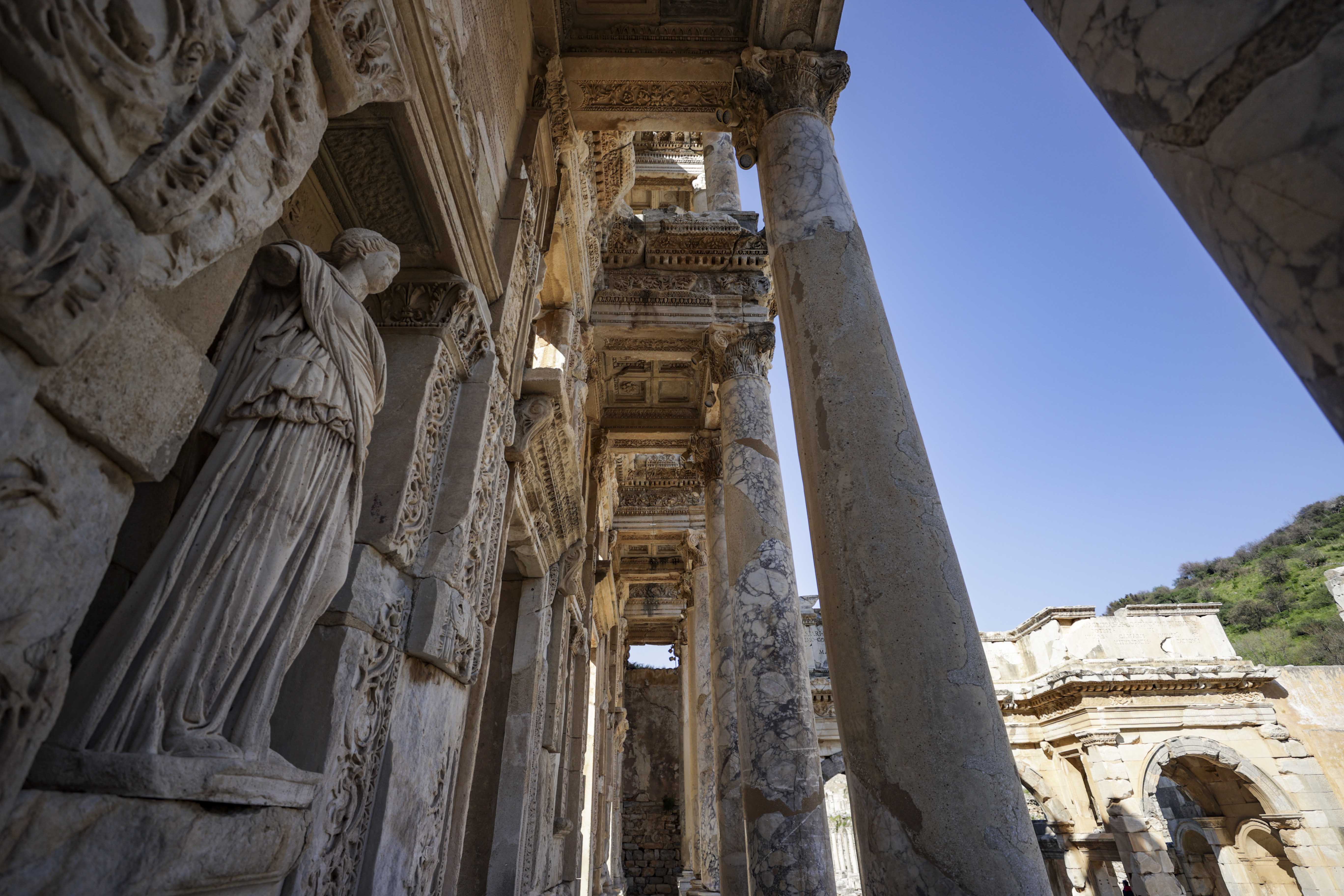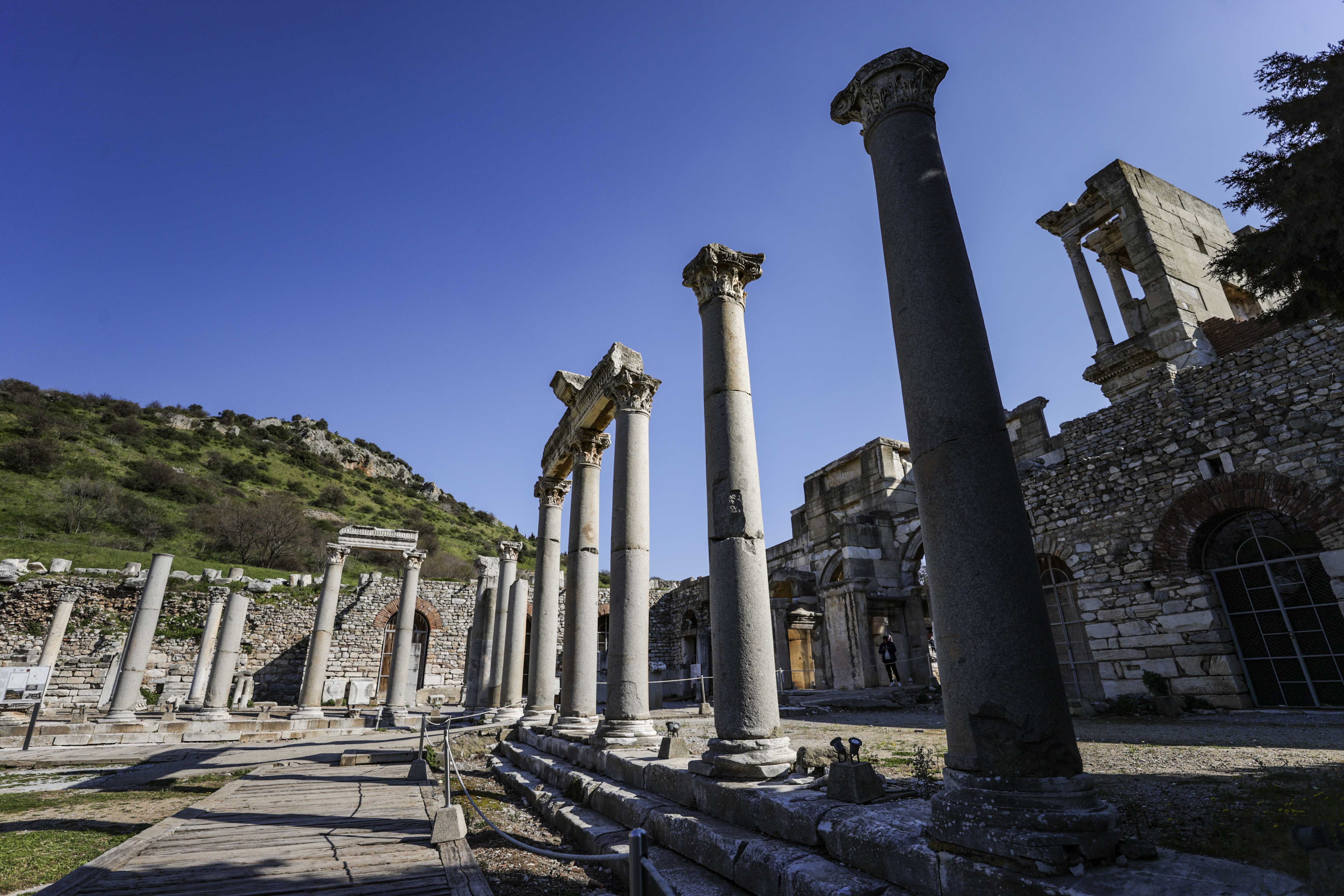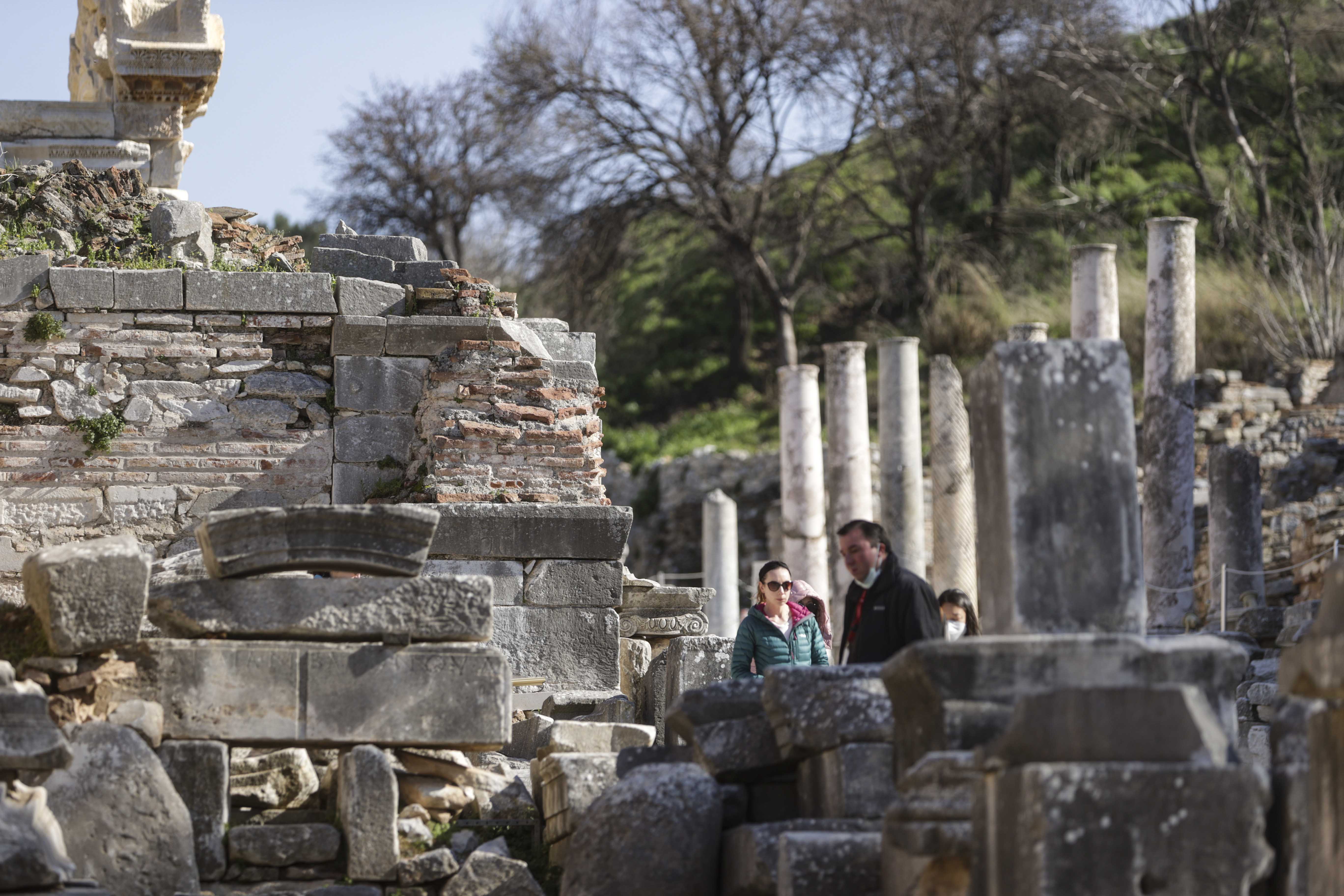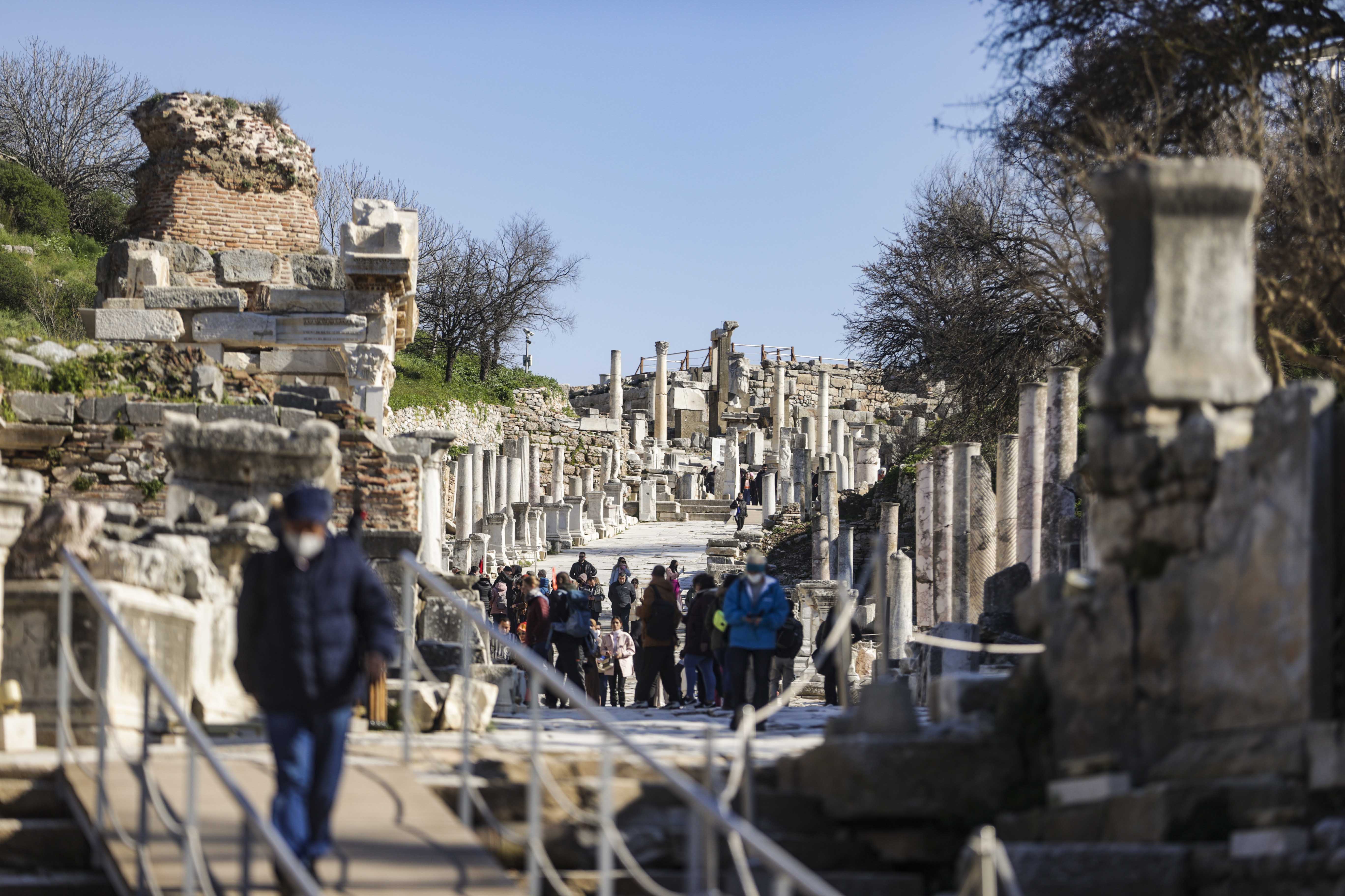 Bahar aylarının gelmesi ve sıcaklıkların yükselmesiyle birlikte Efes'in ziyaretçileri de artıyor.