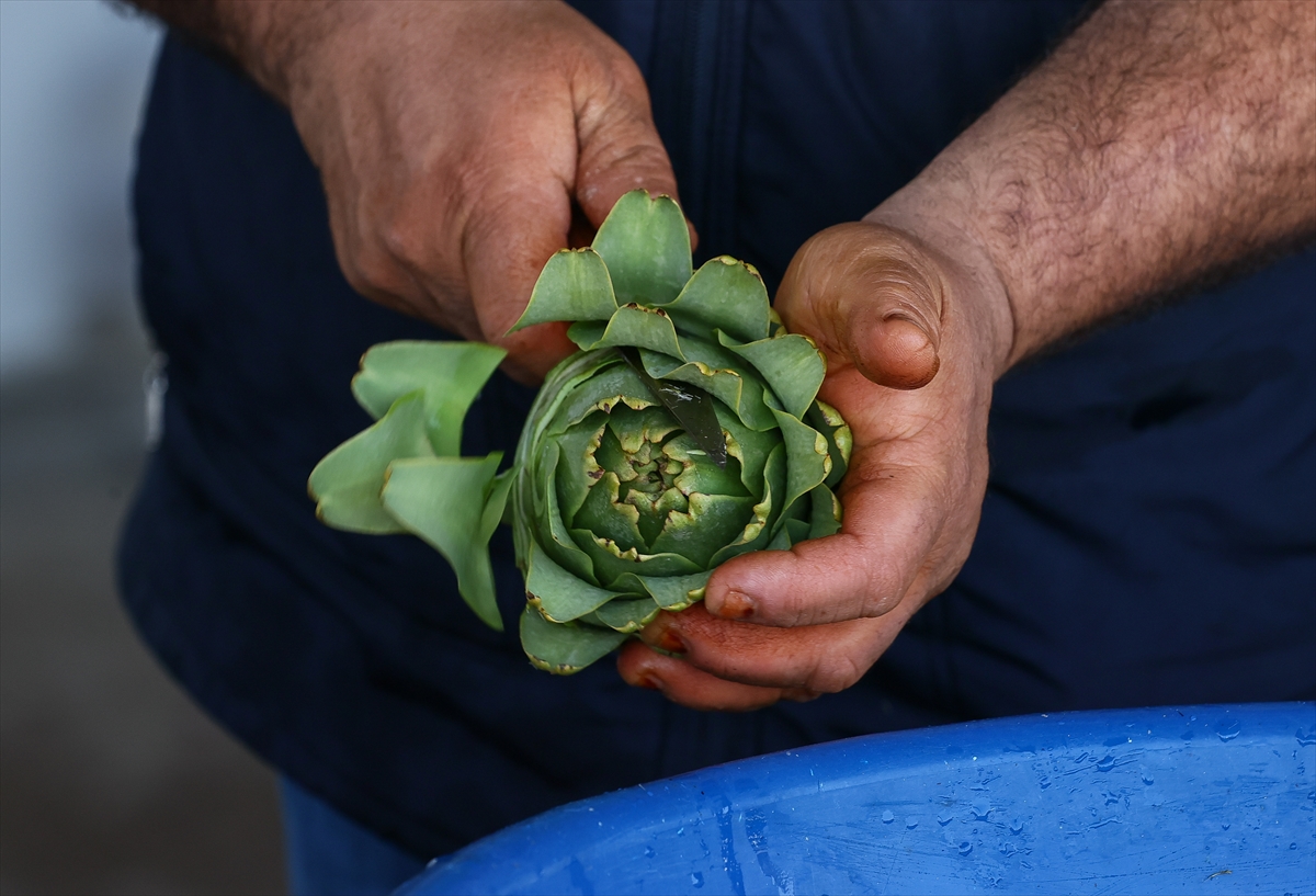 Enginarın hasadı yılın ilk ayından itibaren yapılsa da asıl yoğunluk nisanda başlıyor. Bölgenin coğrafi işarete sahip olan ve ağırlıklı üretiminin yapıldığı sakız enginarında hasat ay sonuna kadar sürecek.