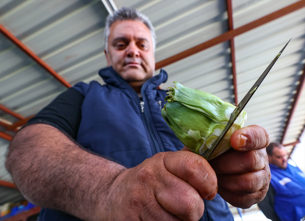 "Sakız enginarı hasadı mayısa kadar devam edecek. Üreticimiz şu an adet başı 5 ile 7 lira arasında satış yapıyor. Pazardaki fiyatı 10 lira civarında. Üreticimiz için adet başı 5-7 lira gayet güzel bir fiyat. Üreticimiz dönüm başı 1800, 2 bin 500 adet enginar elde ediyor."