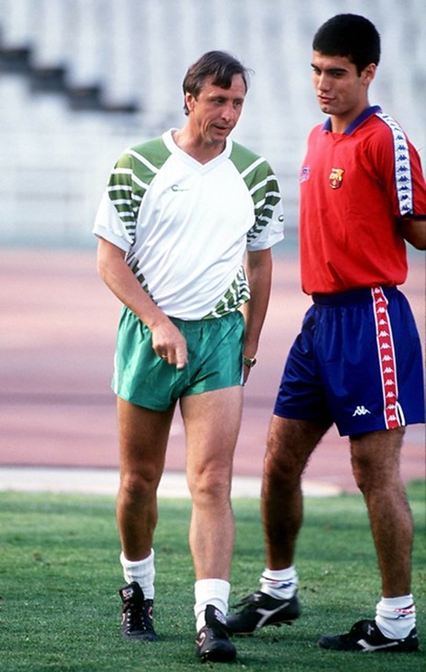 Barcelona Teknik Direktörü Johan Cruyff ve Pep Guardiola.