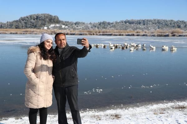 Kent merkezinden ve çevre illerden çok sayıda fotoğrafçı ve ziyaretçiyi ağırlayan gölde, buz tabakasının üzerinde gezen kazlar ve karabataklar, bölgeye gelenlerin ilgisini çekiyor.