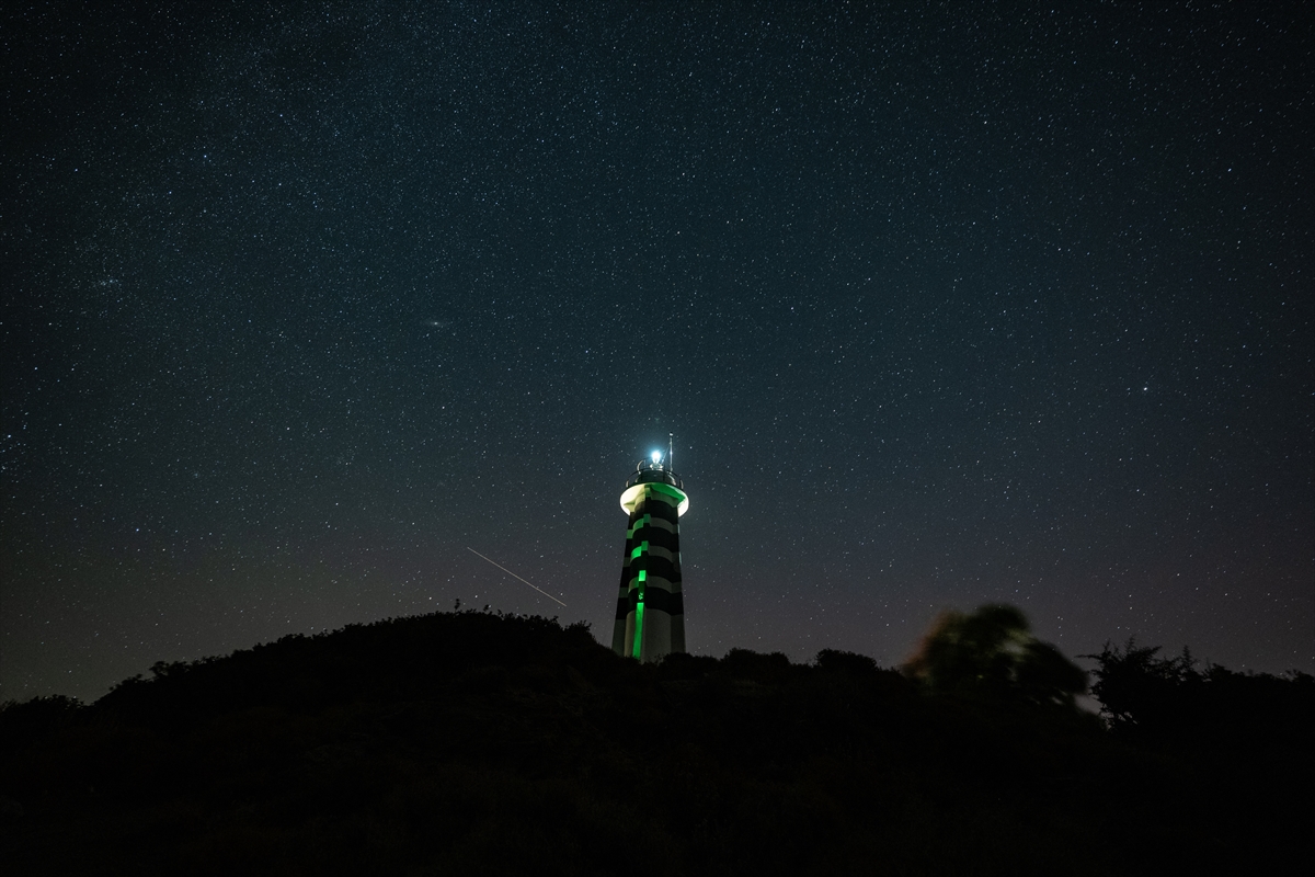 "Perseid meteor yağmuru" İzmir'in Karaburun ilçesi sınırları içinde yer alan Sarpıncık Feneri'nden gözlemlendi. Ege Denizi'ndeki gemilere yol gösteren ve 1938 yılında kurulan Sarpıncık Deniz Feneri, meteorlarla ve yıldızlarla güzel görüntüler oluşturdu.