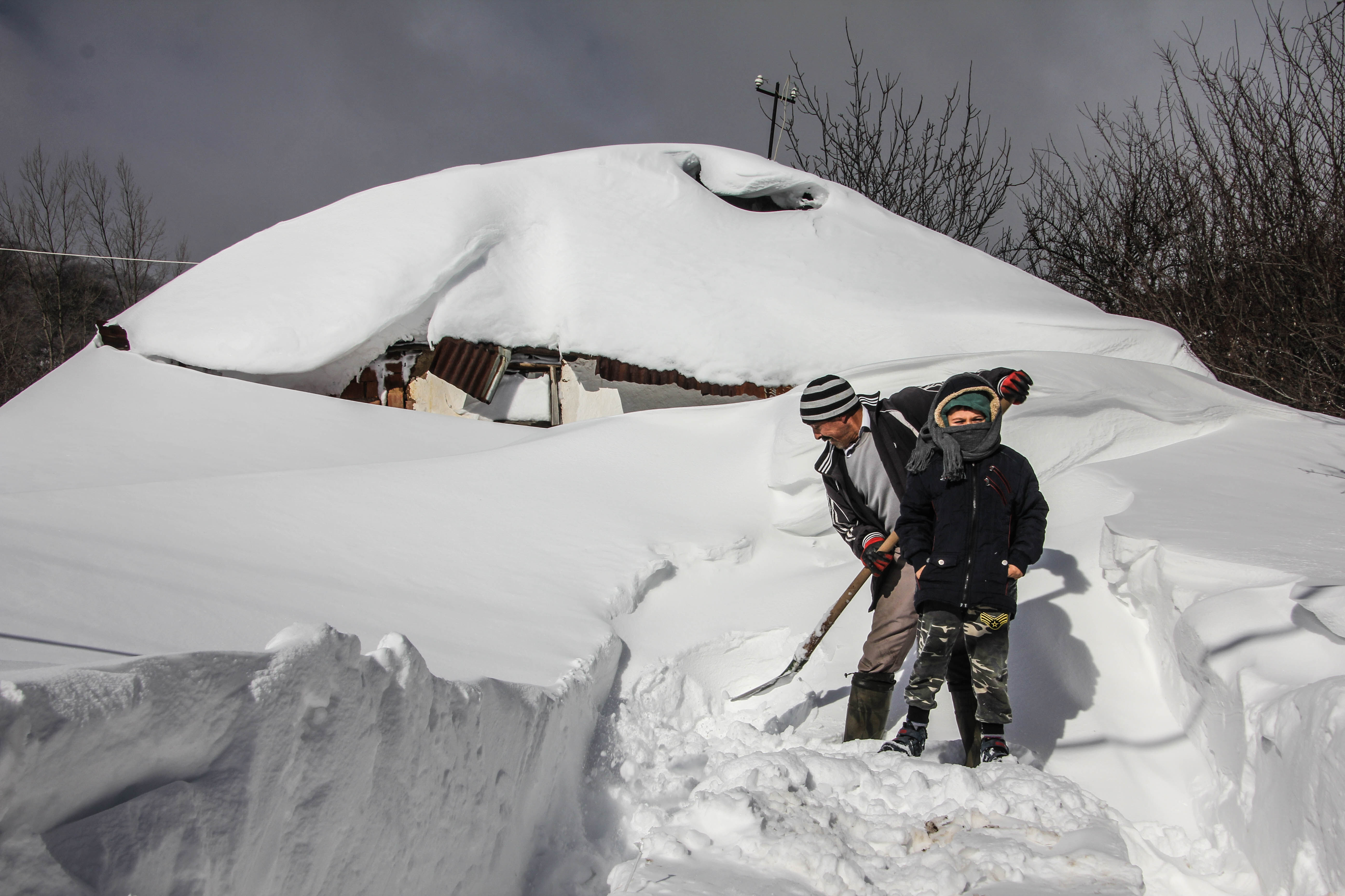 Domaniç Dağı eteklerindeki Safa köyünde yaklaşık 3 gündür süren yoğun kar ve tipi sonucu kar kalınlığı yer yer 3 metreye ulaştı.