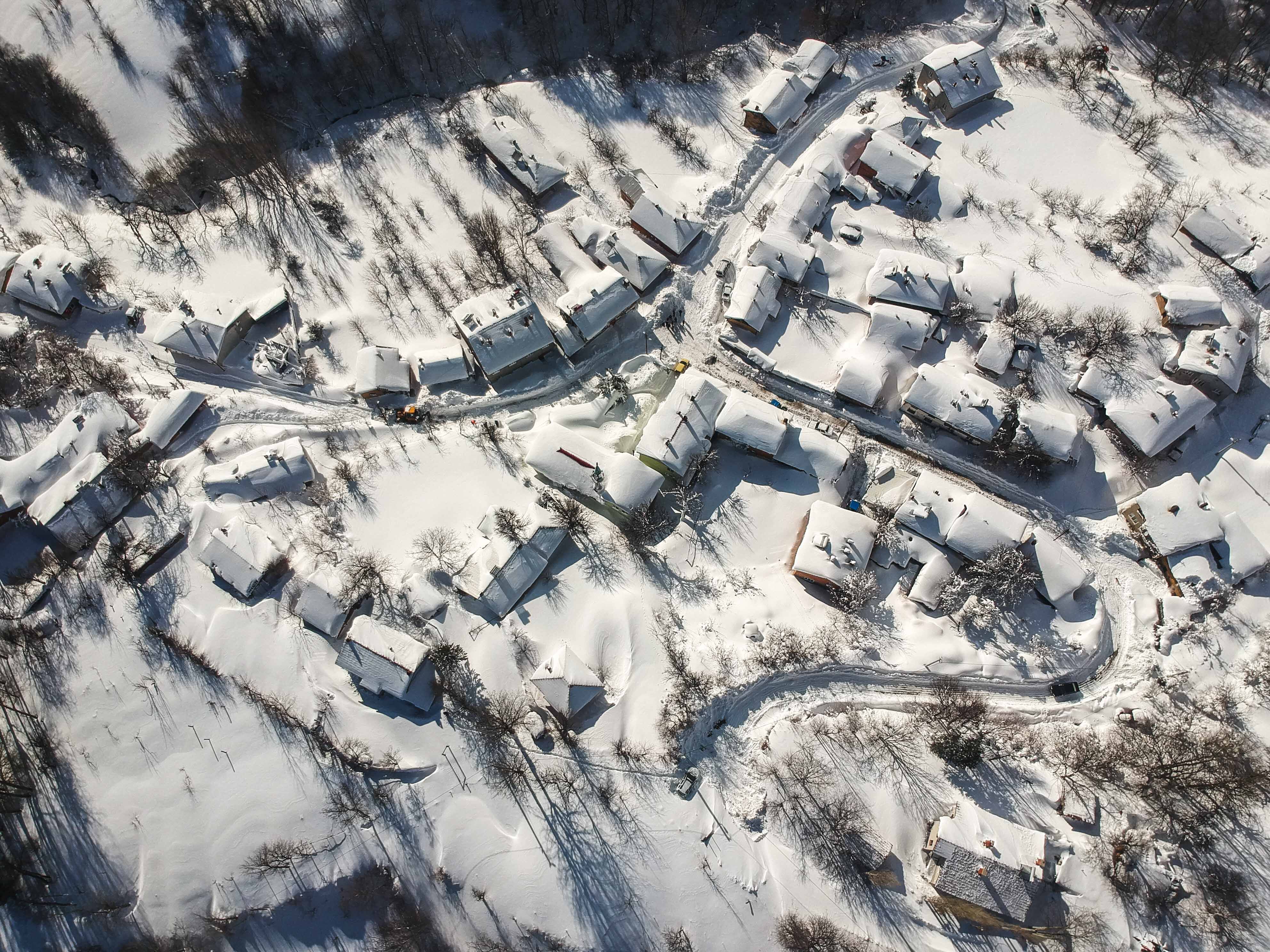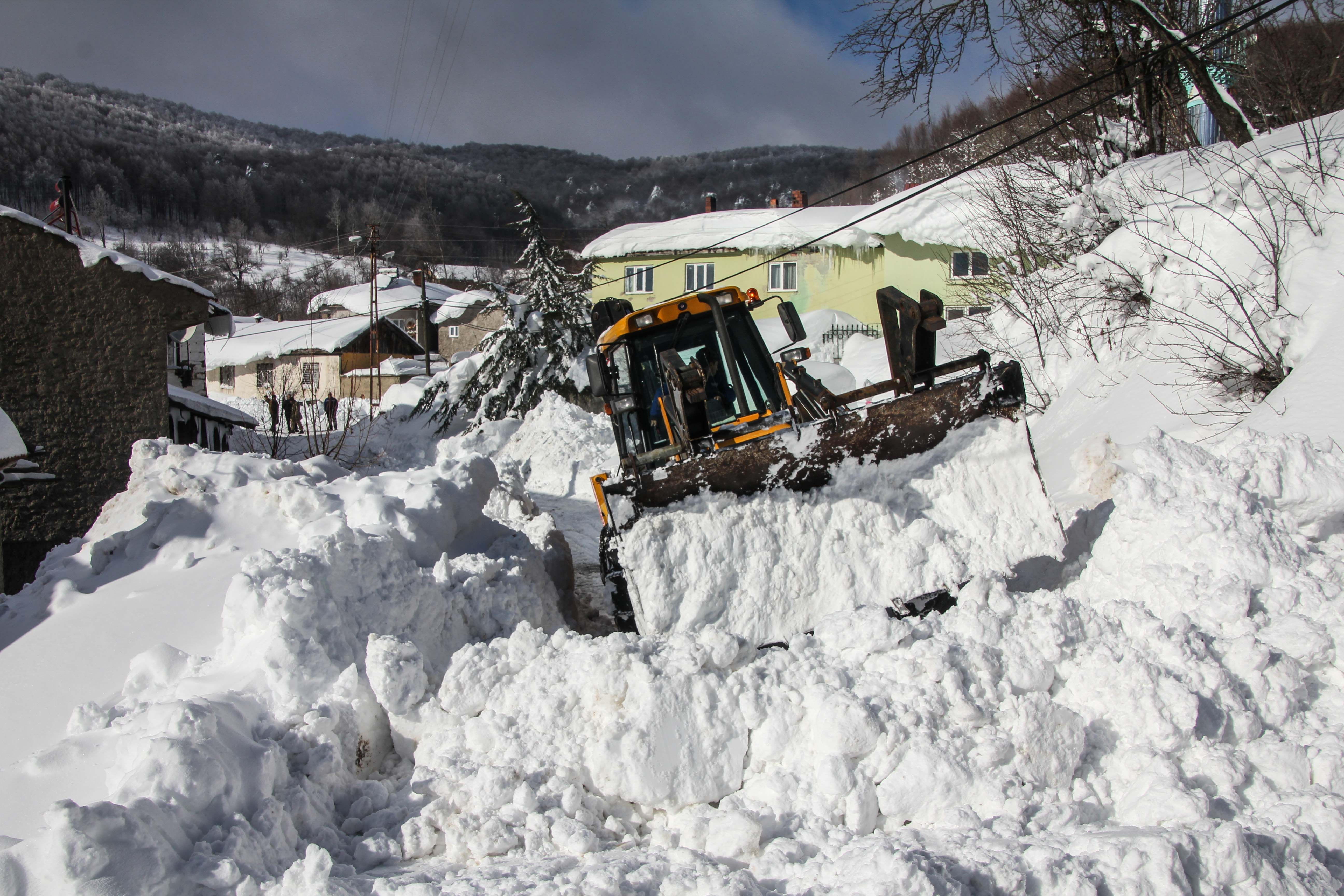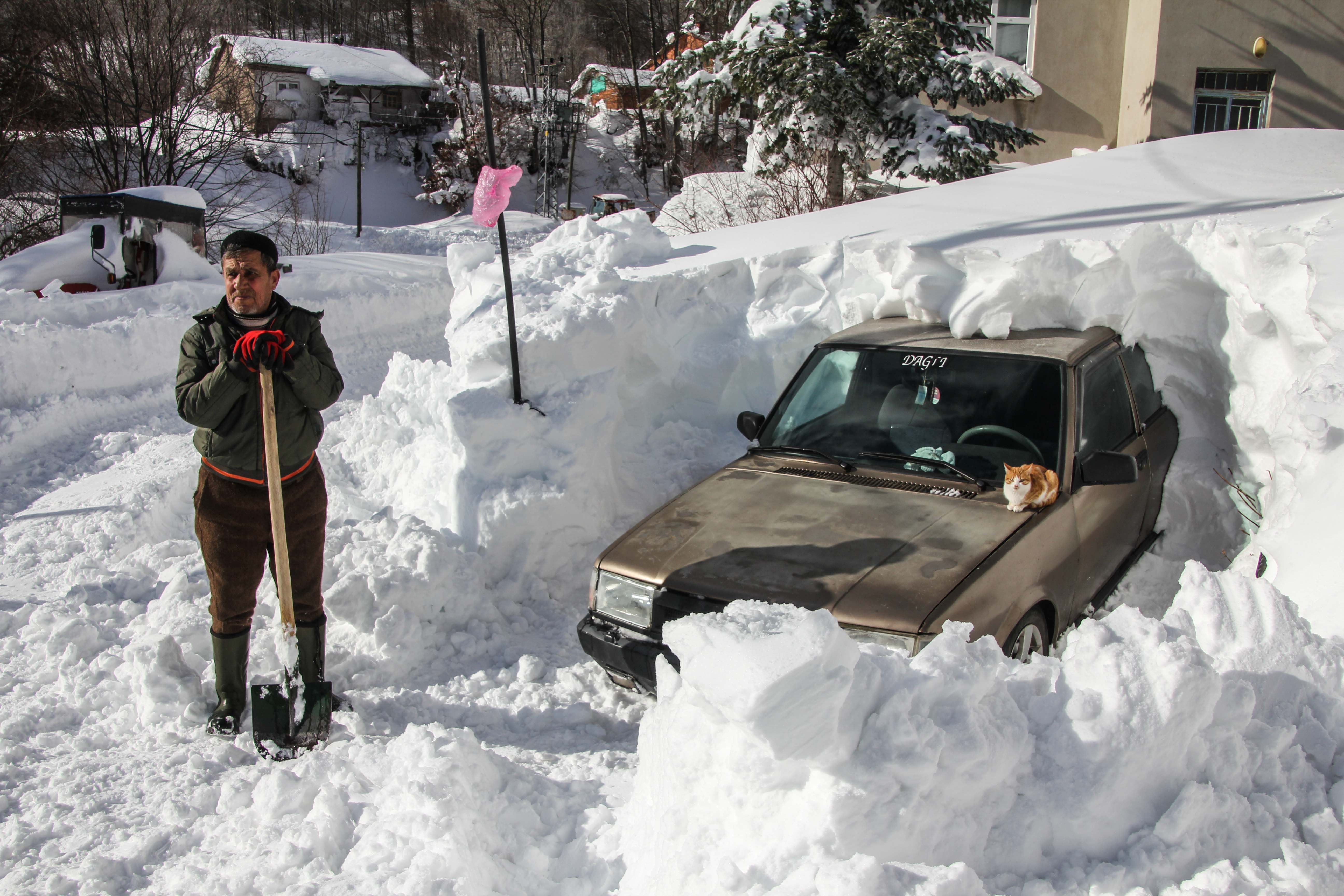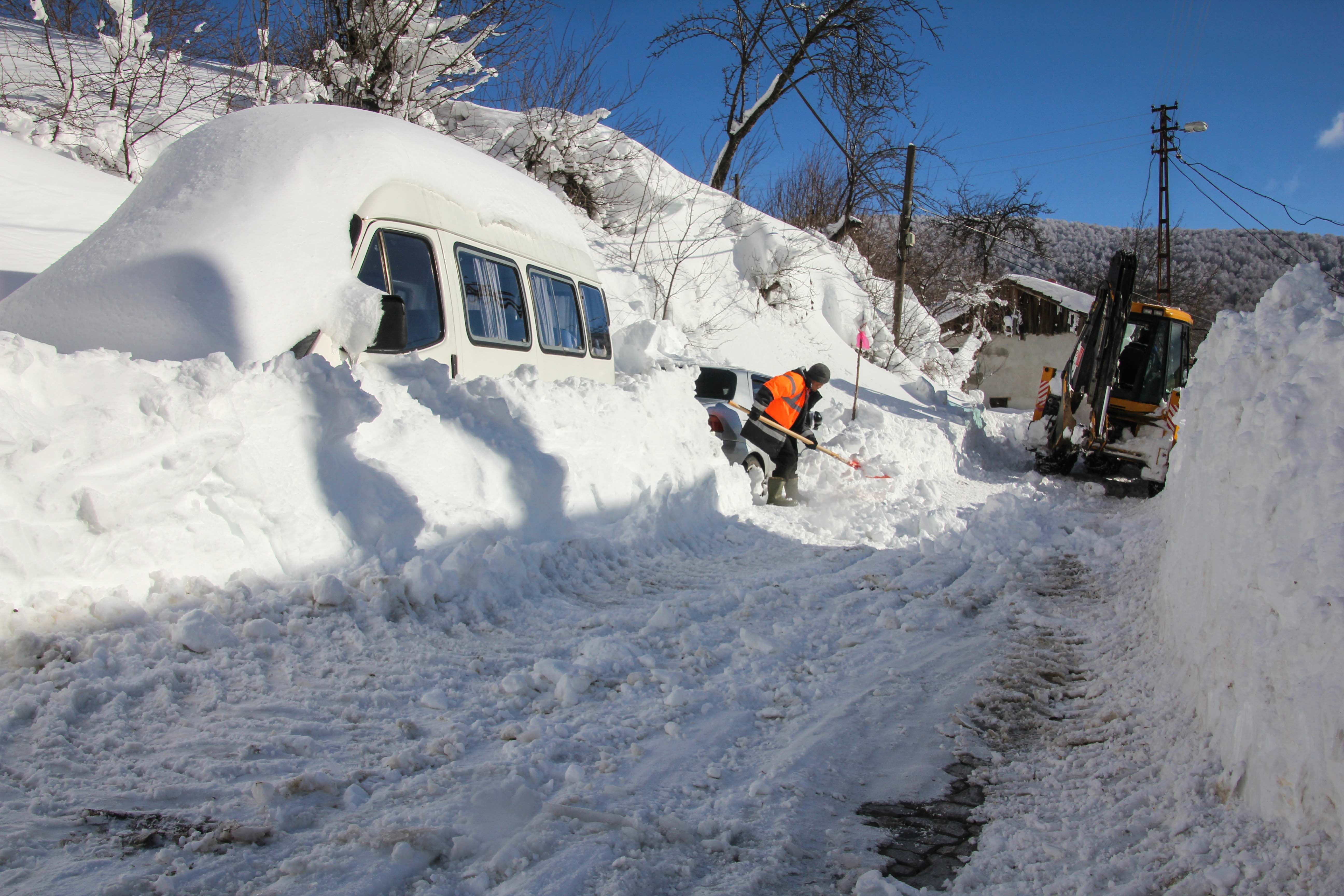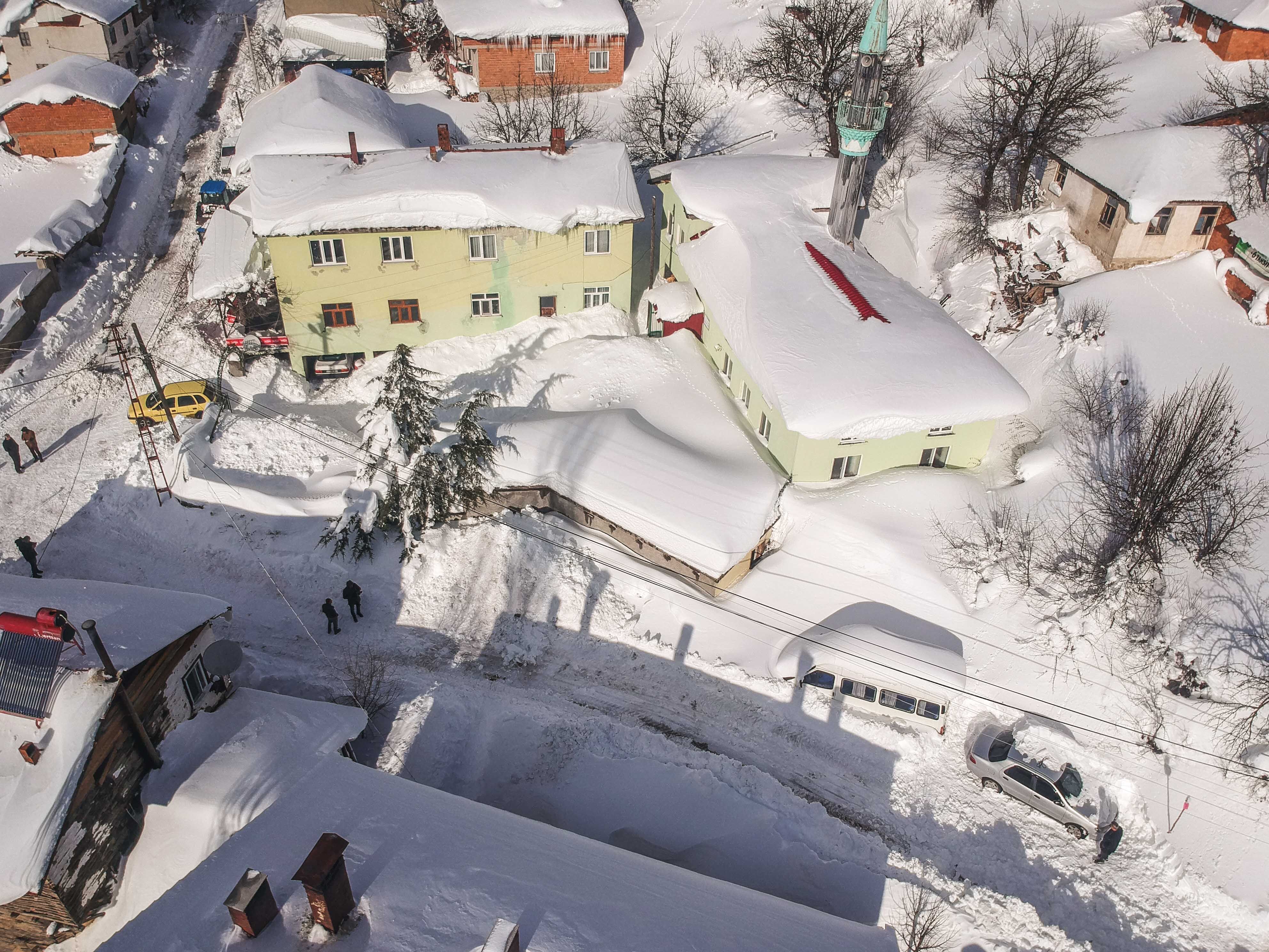Köydeki bazı evler ve araçlar ise kar yığınlarının altında kalarak adeta gözden kayboldu. Vatandaşlar, araçlarını bulabilmek ve çalışma yapan ekiplerin çarpmasını önlemek için kara sapladıkları sopalara poşet bağladı.