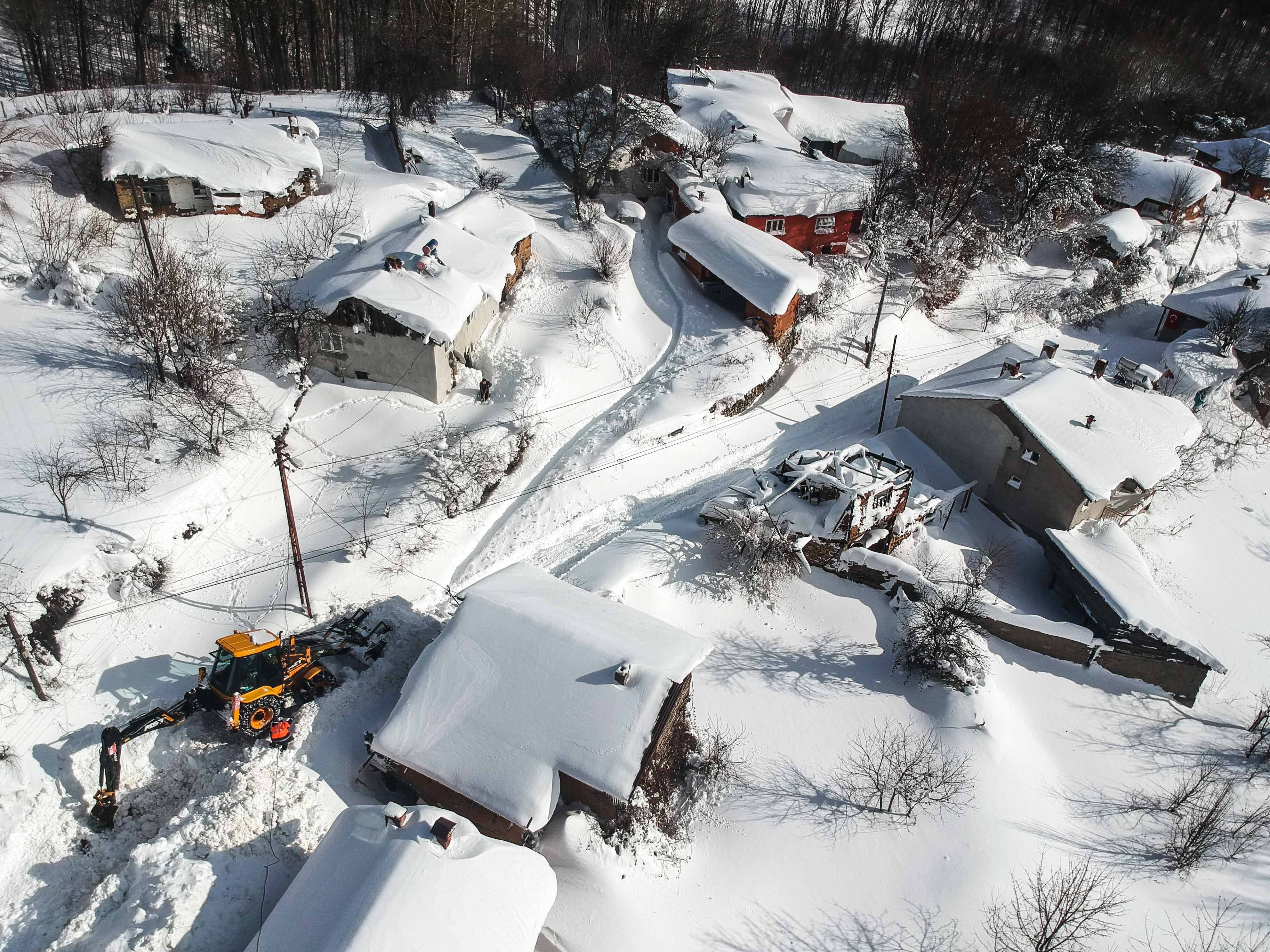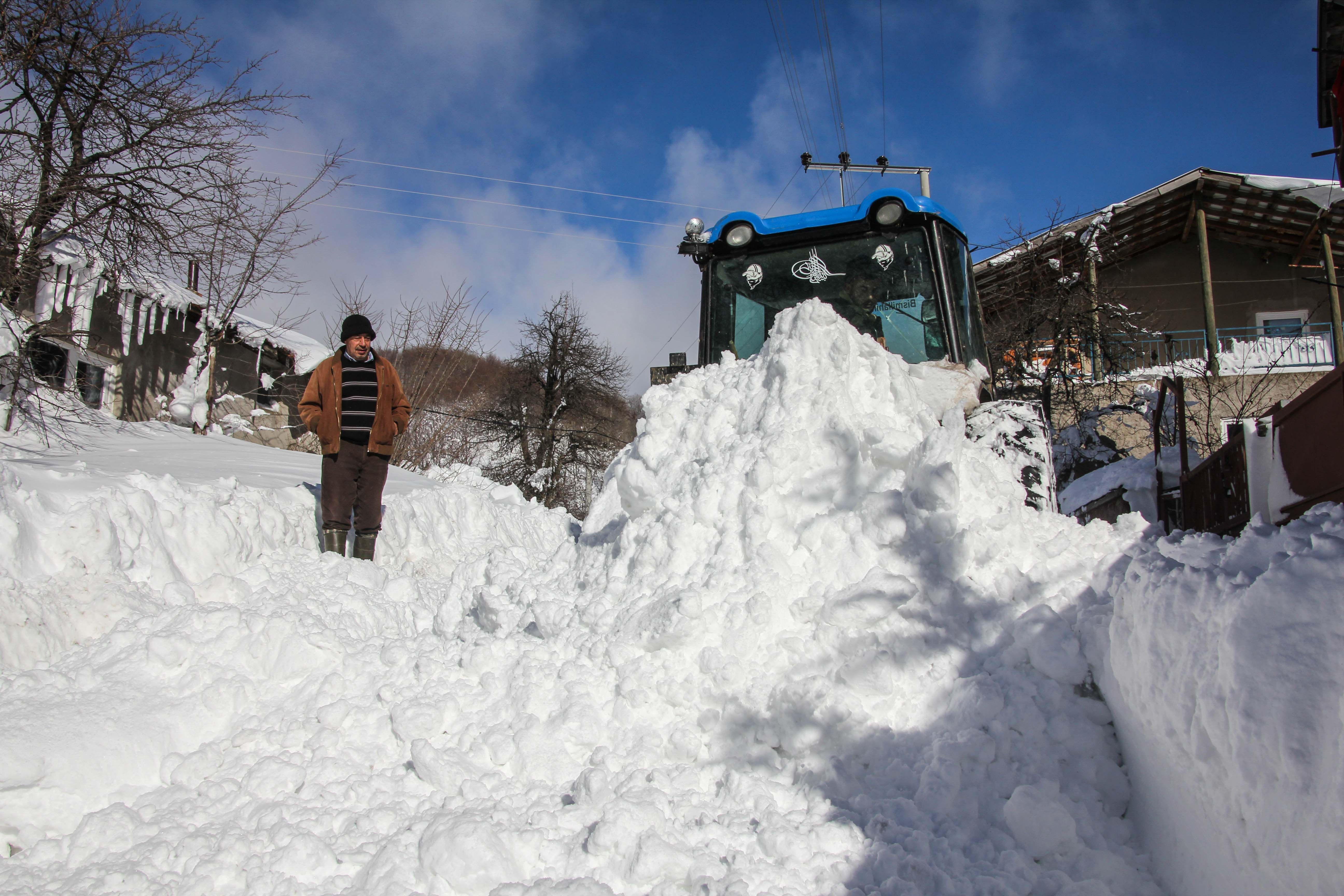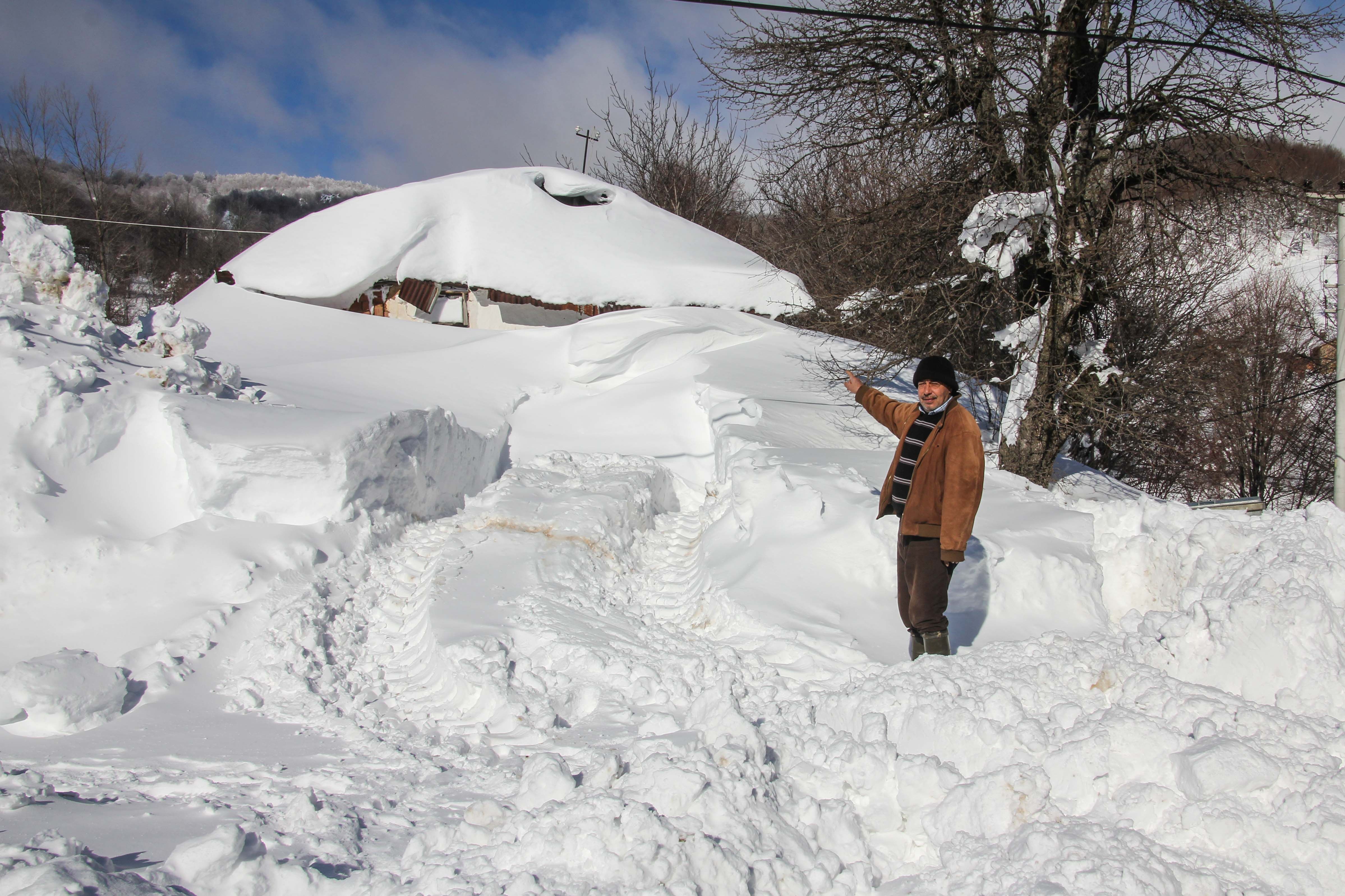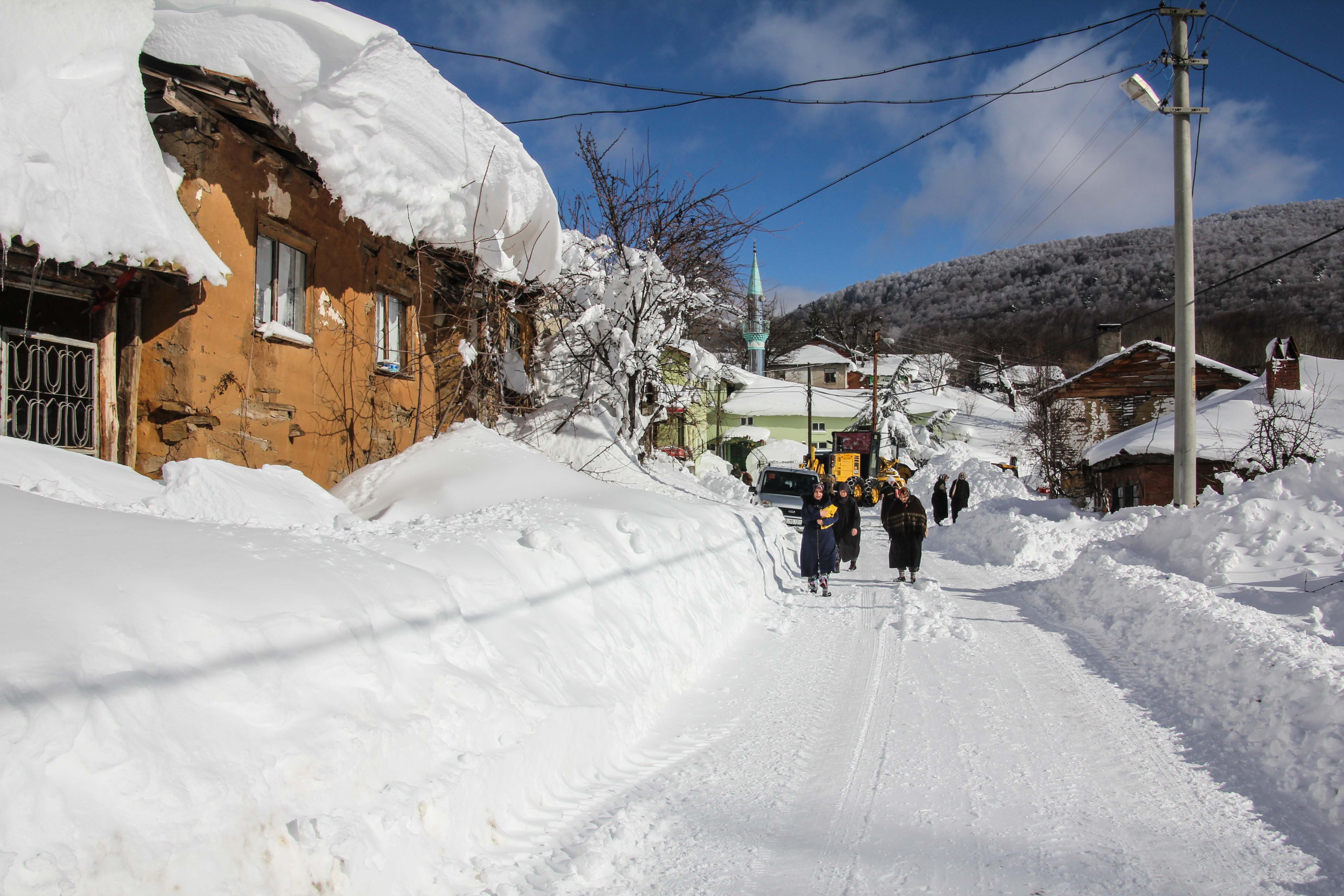 Köyün muhtarı Seyit Ali Bayram ise yoğun kardan dolayı evlerinden güçlükle çıkabildiklerini dile getirdi. (AA)
