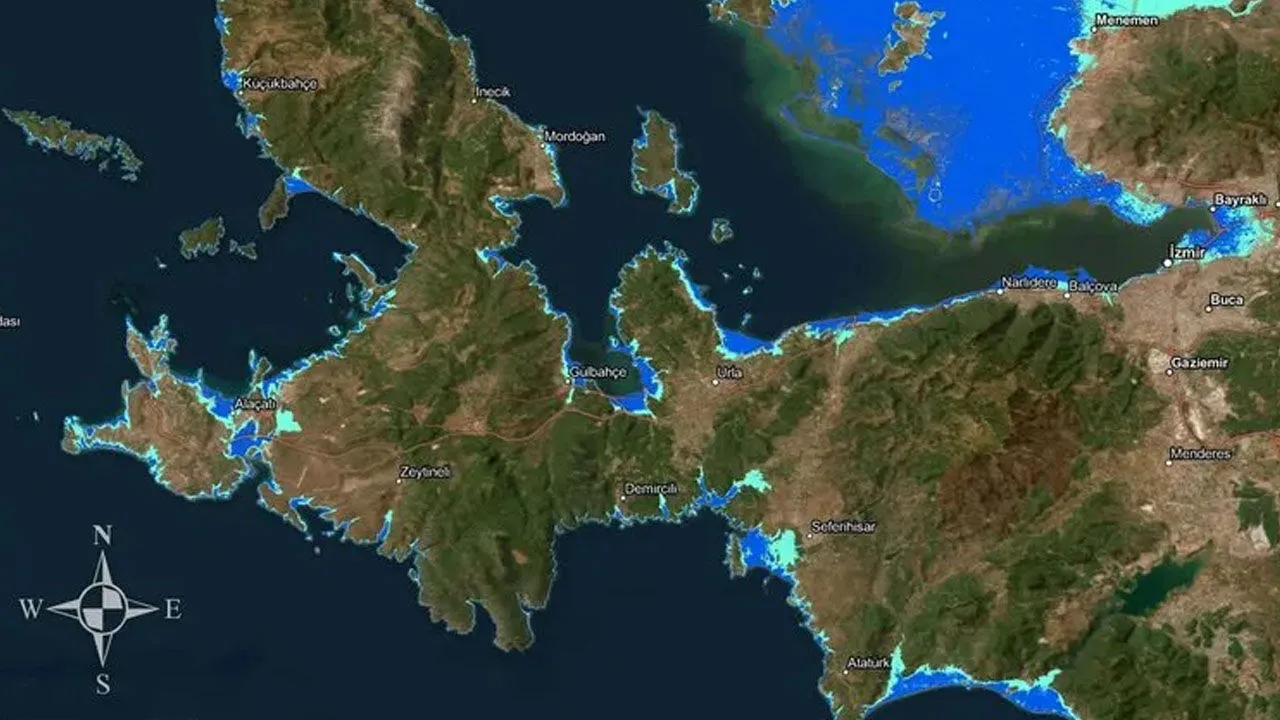 "Ege kıyılarını değerlendirsek Foça'dan başlayarak Bayraklı, İzmir ve Urla Yarımadası etrafından 10 metrelik ve 20 metrelik risk zonları geniş alanlar kaplıyor. İleriye gittiğimiz zaman Kuşadası, Latmos Körfezi, karşısında Sisam Adası, aşağıya indimiz zaman Didim, Güllük Körfezi, Gümüşlük, Turgutreis, Bodrum, Akyaka, Ören, Turgut, Marmaris, Köyceğiz, Sarıgerme ile Fethiye'nin 5 ve 10 metrelik deniz taşkınları risk bölgesinde yer aldığı görülüyor.