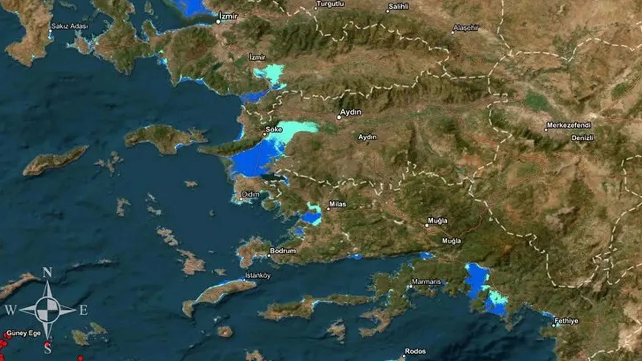 Muğla Sıtkı Koçman Üniversitesi Coğrafi Bilgi Sistemleri ve Uzaktan Algılama Merkezi (CBS-UZAL) Müdürü Doç. Dr. Ceyhun Özçelik, Ege Denizi'nde Santorini Adası çevresinde yaşanan deprem fırtınasıyla ilgili Yunanistan ve Türkiye kıyılarında tsunamiden etkilenecek taşkın alanlarının metre metre yer aldığı harita geliştirdi.