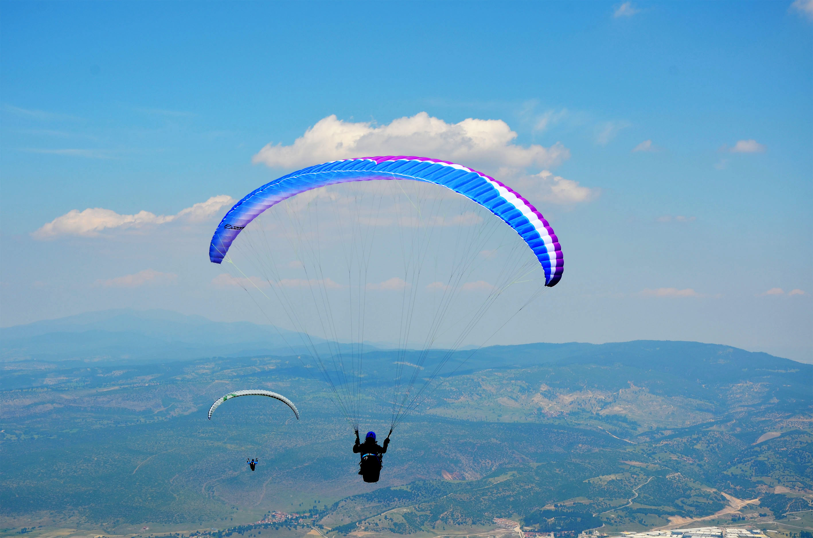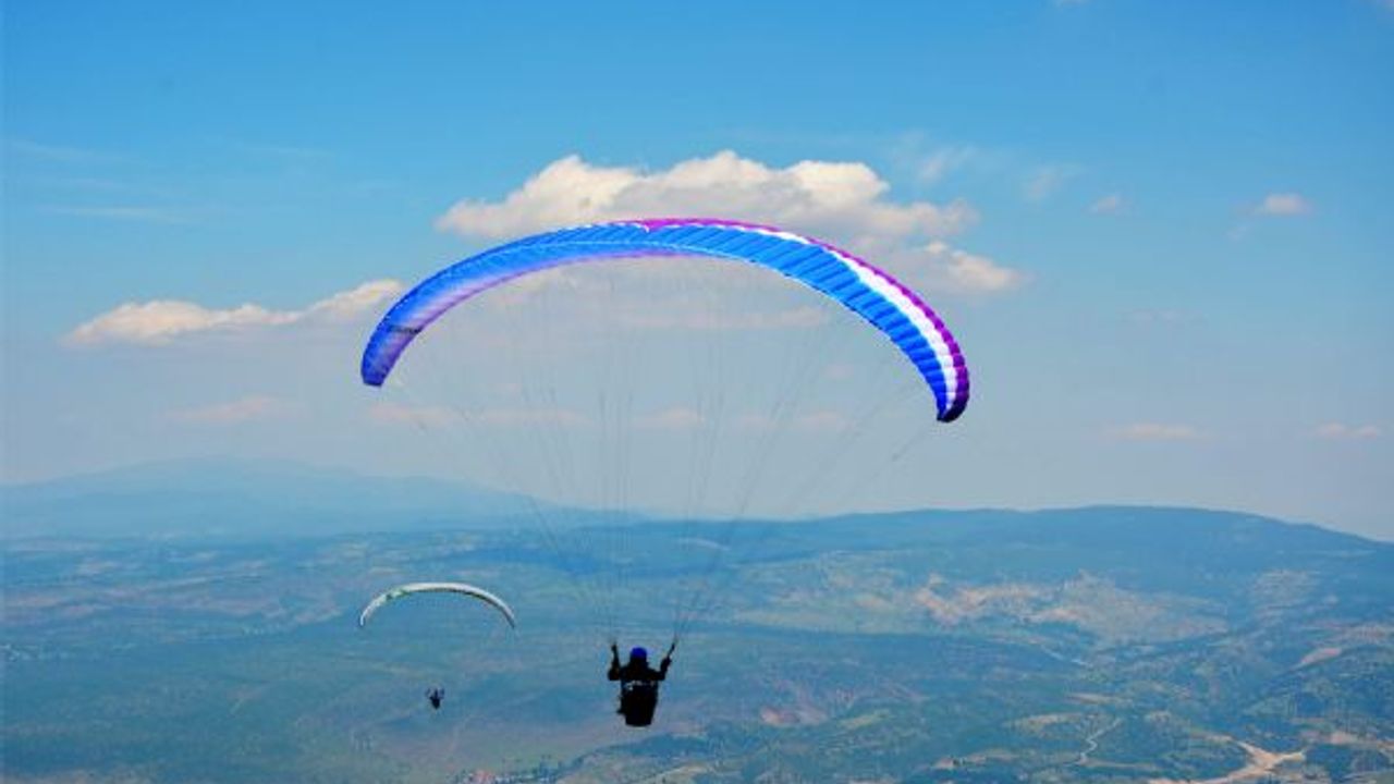 Kütahya'nın Simav ilçesinde, yamaç paraşütçüleri, Kestane Dağı'ndan kalkarak yaklaşık 150 kilometre mesafeye uçabiliyor.