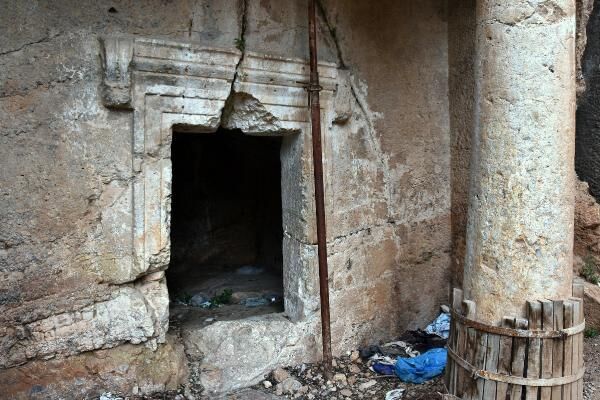 Yaklaşık 2 bin 500 yıllık antik İdyma Kenti'ne ev sahipliği yapan Akyaka'daki kaya mezarlarındaki çatlaklar da dikkati çekiyor.