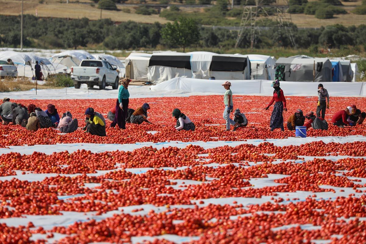 Torbalı'da domates kurutma işinde çalışanların büyük kısmını Güneydoğu Anadolu Bölgesi'nden gelen tarım işçileri oluşturuyor. Kendi imkanlarıyla kurdukları çadırlarda kalan aileler, evlerinden yüzlerce kilometre uzakta "gurbet mesaisini" sürdürüyor.