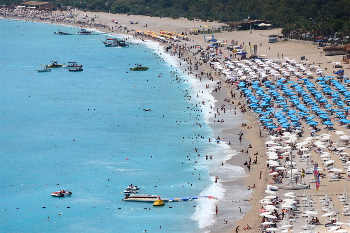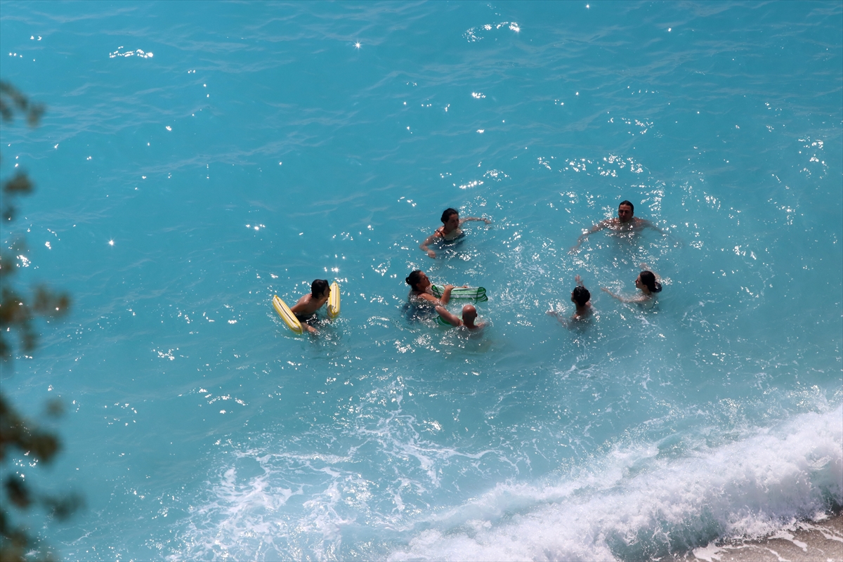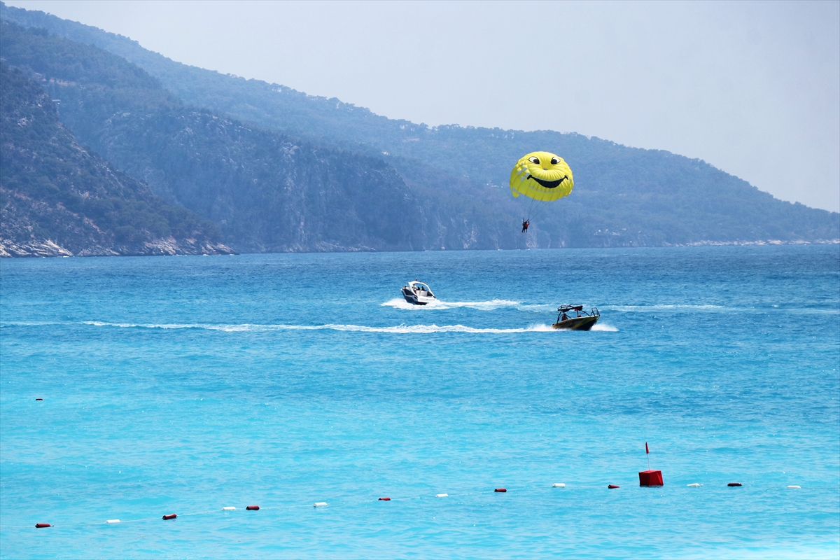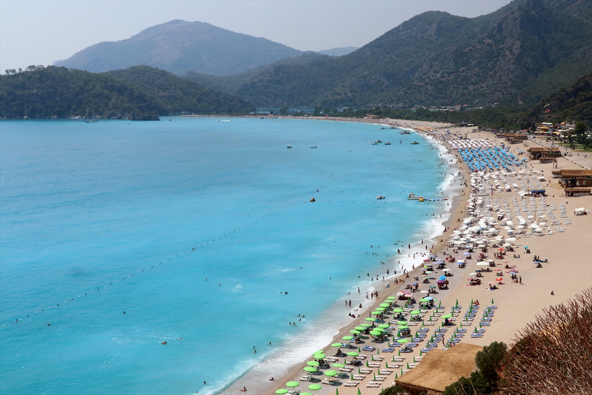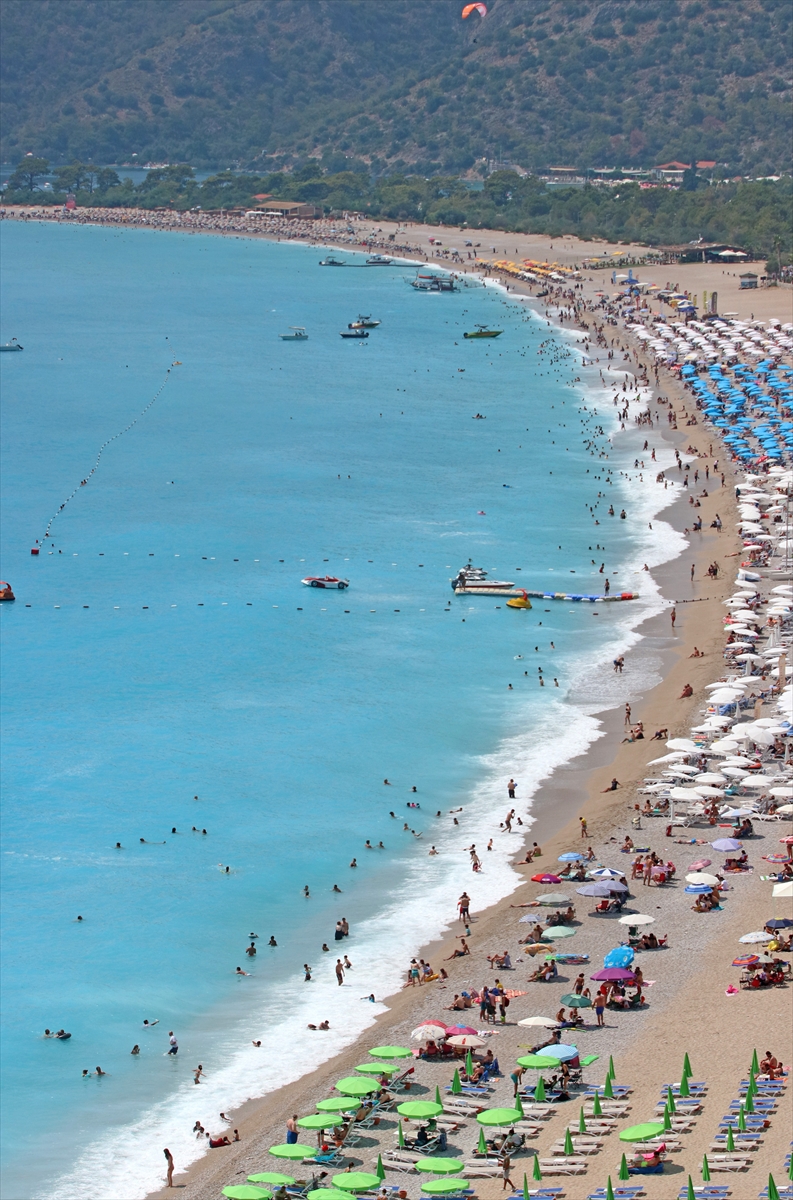 Fethiye ilçesinde tatilciler, Ölüdeniz Mahallesi'ndeki Belcekız ve Kumburnu plajlarında denize girdi, güneşlendi.