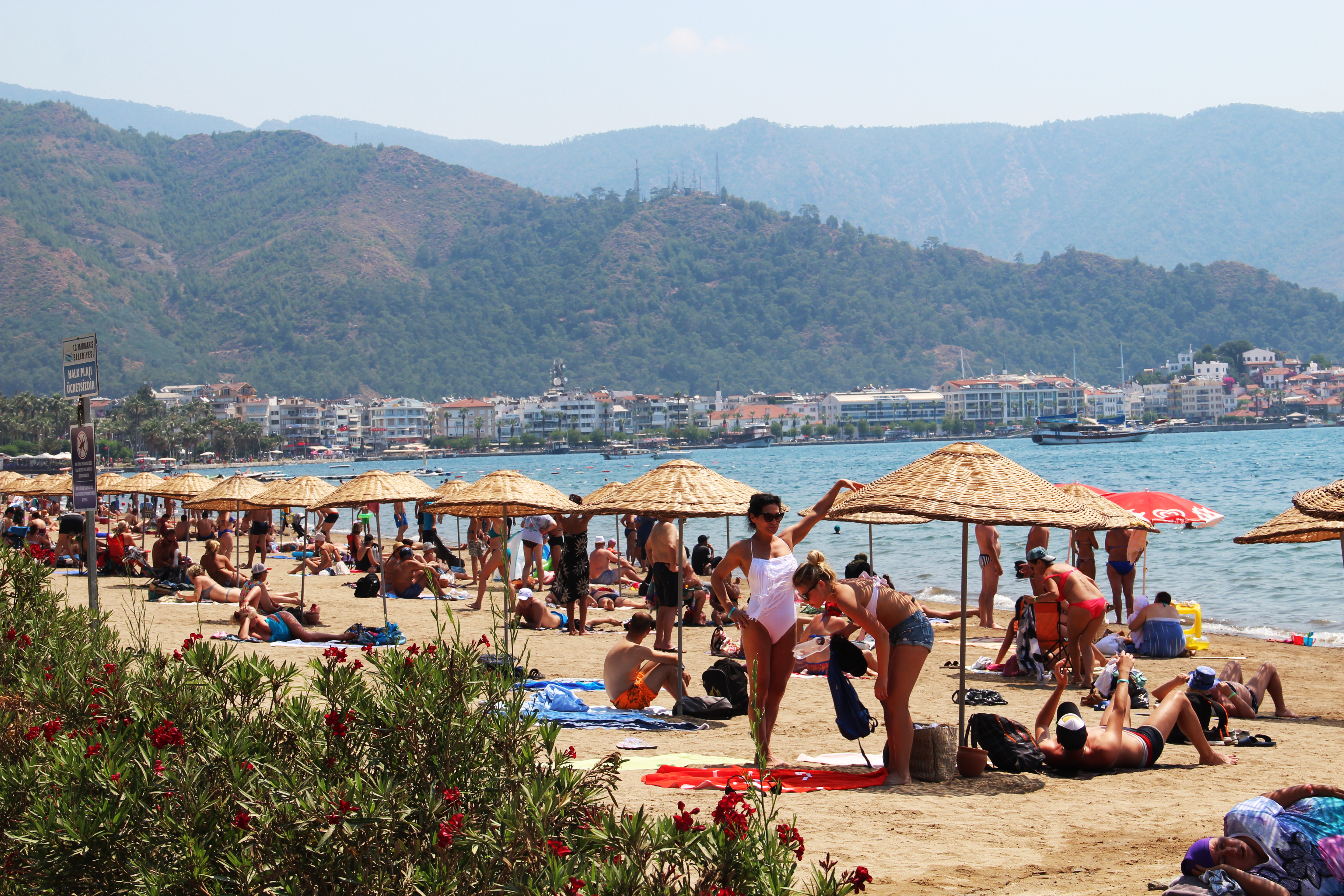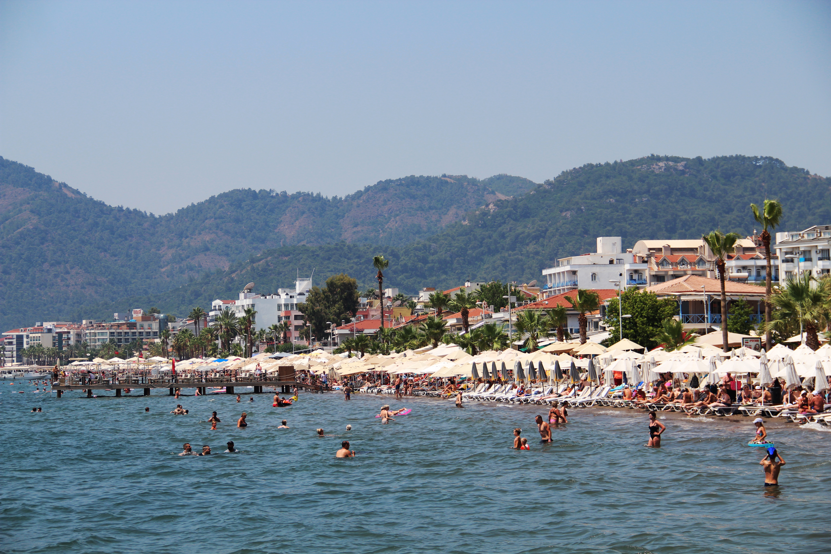 Muğla'nın turistik ilçelerinde de plajlara akın eden tatilciler, denizin keyfini çıkardı. Hava sıcaklığının 36, deniz suyu sıcaklığının 24 derece ölçüldüğü Marmaris'te turistler halk plajı, Uzunyalı ve İçmeler sahillerinde yoğunluk oluşturdu. Adrenalin sevenler körfezde deniz paraşütü yaptı.