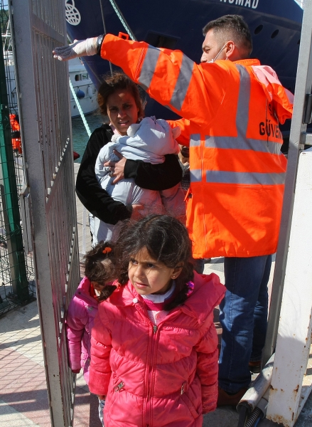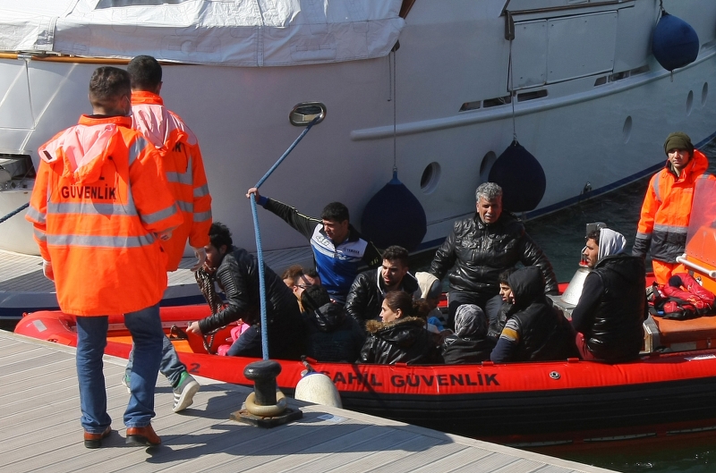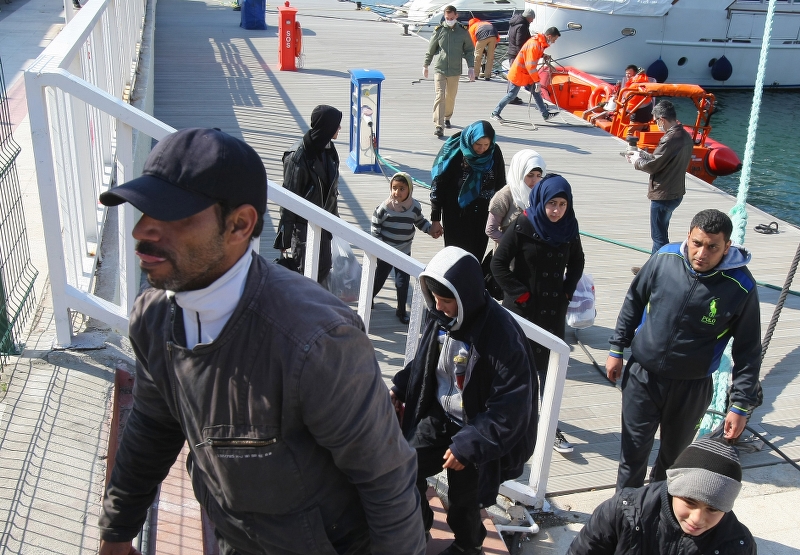Çeşme Limanına nakledilen sığınmacılar, işlemlerinin ardından İzmir Göç İdaresi Müdürlüğüne gönderildi.