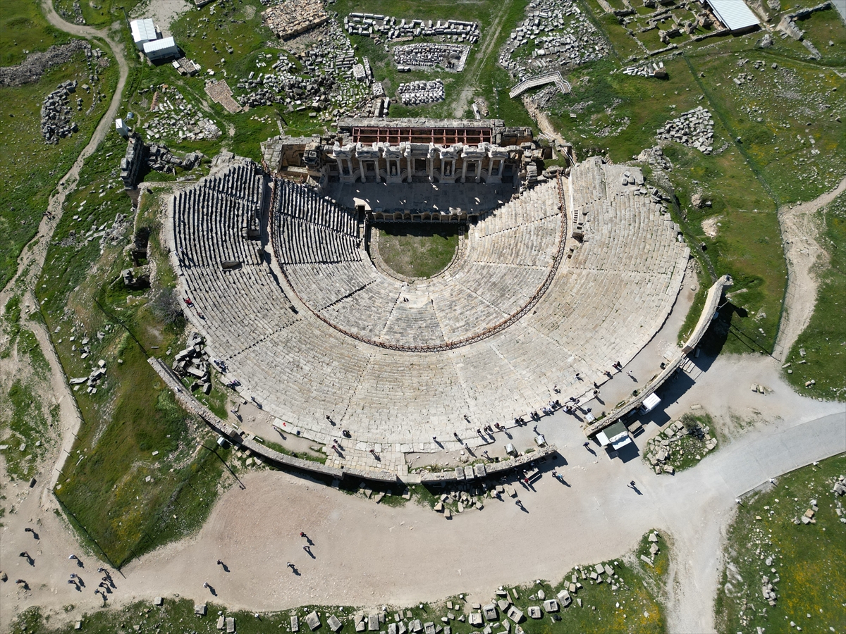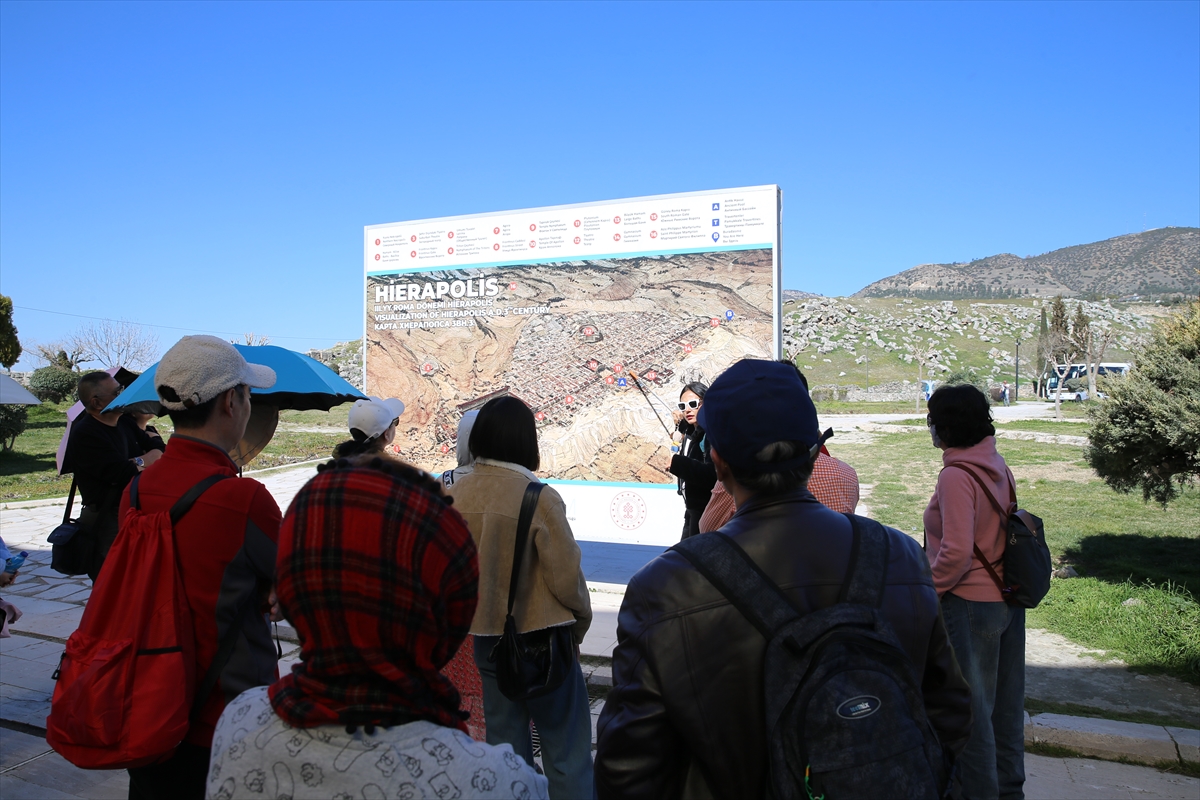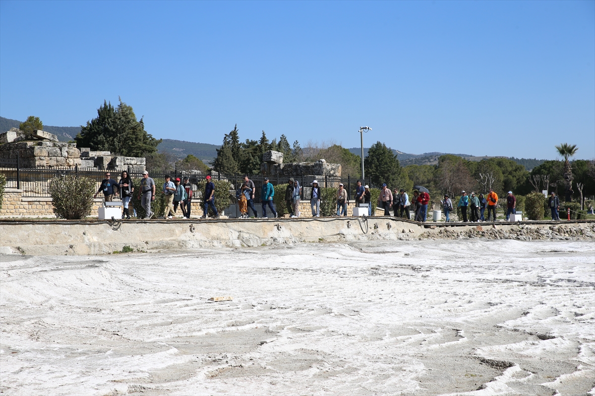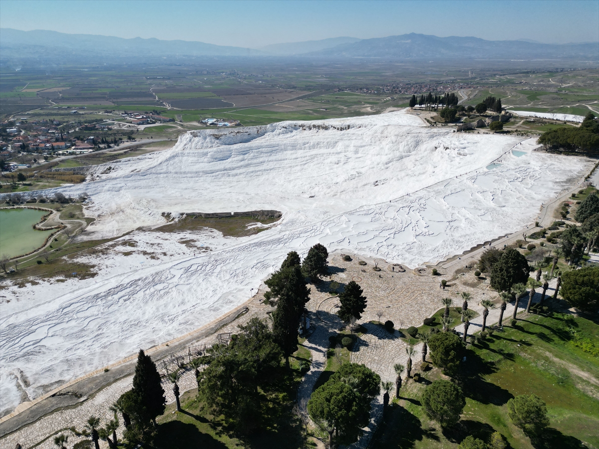 Dünyanın dört bir tarafından gelenler, travertenleriyle benzersiz doğal güzelliğe sahip Pamukkale'de, geçmişi 2 bin 200 yıl öncesine uzanan Hierapolis Antik Kenti'nde tarihle iç içe vakit geçiriyor.