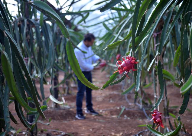 Hem görünümü hem de tadıyla ilgi geçen, antioksidan özelliğiyle de ön plana çıkan ejder meyvesi, "yok sattığı" hasat döneminde üreticisini sevindirdi.