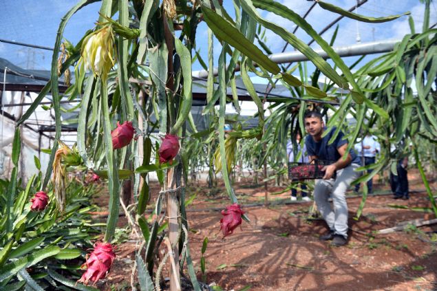 Mersin'de alternatif ürün olarak yaklaşık 80 dekar arazide yetiştirilen ve hasadı büyük oranda tamamlanan ejder meyvesi, üreticisinin yüzünü güldürdü.