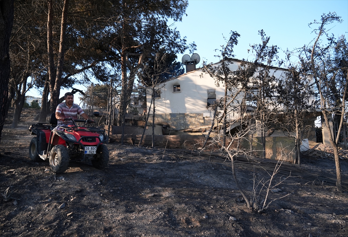 Ömür beldesinde de çok sayıda ev, alevlere teslim oldu. Yaren Sitesi'ndeki 14 ev, ciddi zarar gördü. Evi yanan vatandaşlardan, site yöneticisi Tahsin Çalış, "Alevlerin buraya kadar geleceği, evlerimizin kül olacağı aklımızın ucundan geçmezdi. Saat 18.00 sıralarında jandarma, bizden siteyi boşaltmamızı istedi. Ben de site sakinlere durumu bildirdim. En kısa sürede siteyi boşalttık. Ancak bize nereye gitmemiz gerektiğini söylemediler. Seferihisar tarafına gittik, yol kapalı. Payamlı tarafı dumanlar içinde. Bir marketin bahçesinde sabahı ettik. Gelen gidenden haber aldık. Hala evimizin yanacağı hiç aklımıza gelmiyordu. Bir arkadaşımız yanan evlerin fotoğraflarını çekip gönderdi ve evlerimizin yandığını gördük. Her yer kül olmuş. Her yer yanmış, bitmiş, soğutmaya gelmişler. Yaren Sitesi'nde 14 evin hepsi ağır hasarlı. Sorumlular çıksın. Evimiz kül olmuş ama karşımızda yetkili bulamadık. Bir belediye başkanı, başkan yardımcısı göremedik. Onlar da haklı; her yerde yangın var. Onlara suç bulmuyorum ama geçmiş olsun demeleri lazım" dedi.