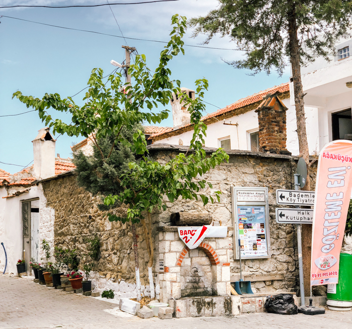 Haliyle, köyde mutlaka görülmesi gereken yerlerin başında Tiyatro Binası geliyor. Bugüne kadar 150’nin üzerinde oyunun sahnelendiği yer, her yıl Mayıs’ın ilk haftası Bademler Tiyatro Şenliği’nin de yapıldığı yer. Bir diğer enteresan yer de Arkeolog Dr. Musa Baran kendi evini dönüştürmesiyle oluşturduğu Türkiye’nin ilk Çocuk Oyuncakları Müzesi. Köy meydanındaki müzede geleneksel çocuk oyuncakları kadar köy tarihiyle de ilgili belgeler var. Fakat her zaman açık değil. Bu meydanda her pazar yöresel pazar da kuruluyor.