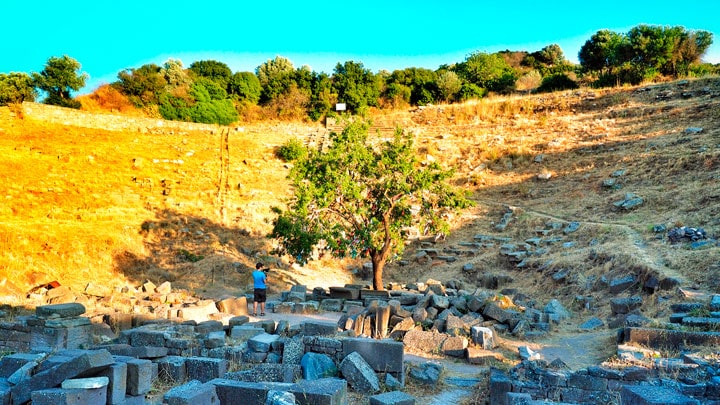 Keçi Gezdirme ve Derme Deşirme gibi çeşit çeşit seremoniler, bayramlar, kutlamalar, yarışmalar, imeceler, kılıktan kılığa girmeler, şamatalar, oyunlar ve tabi ki Köyü’nün alamet-i farikası 84 yıldan beri “perde” dedikleri köy tiyatrosu hep burada. 1932 yılında Mustafa Anarat adında bir yedek subay öğretmenin kendi çabasıyla gençlerden oluşan bir tiyatro grubu kurmasıyla başlayan tiyatro geleneği, tiyatroların bir bir kapanmaya başladığı bugünlerde bile hala ayakta. Artık köy yaşamının ayrılmaz bir parçası haline gelmiş. Tiyatro kadrosunun tamamı da köylülerden oluşuyor. Gündüz tarla akşam tiyatro! Buradaki tiyatro geleneğinin çocukluğuna inecek olursak, köyün yakınlardaki Antik Kent Teos’ta, Helenistik Dönem’de kurulmuş Dionysos Sanatçıları Birliği’nin karşımıza çıkması da tesadüf değil. İşte bunlar hep tragedya!