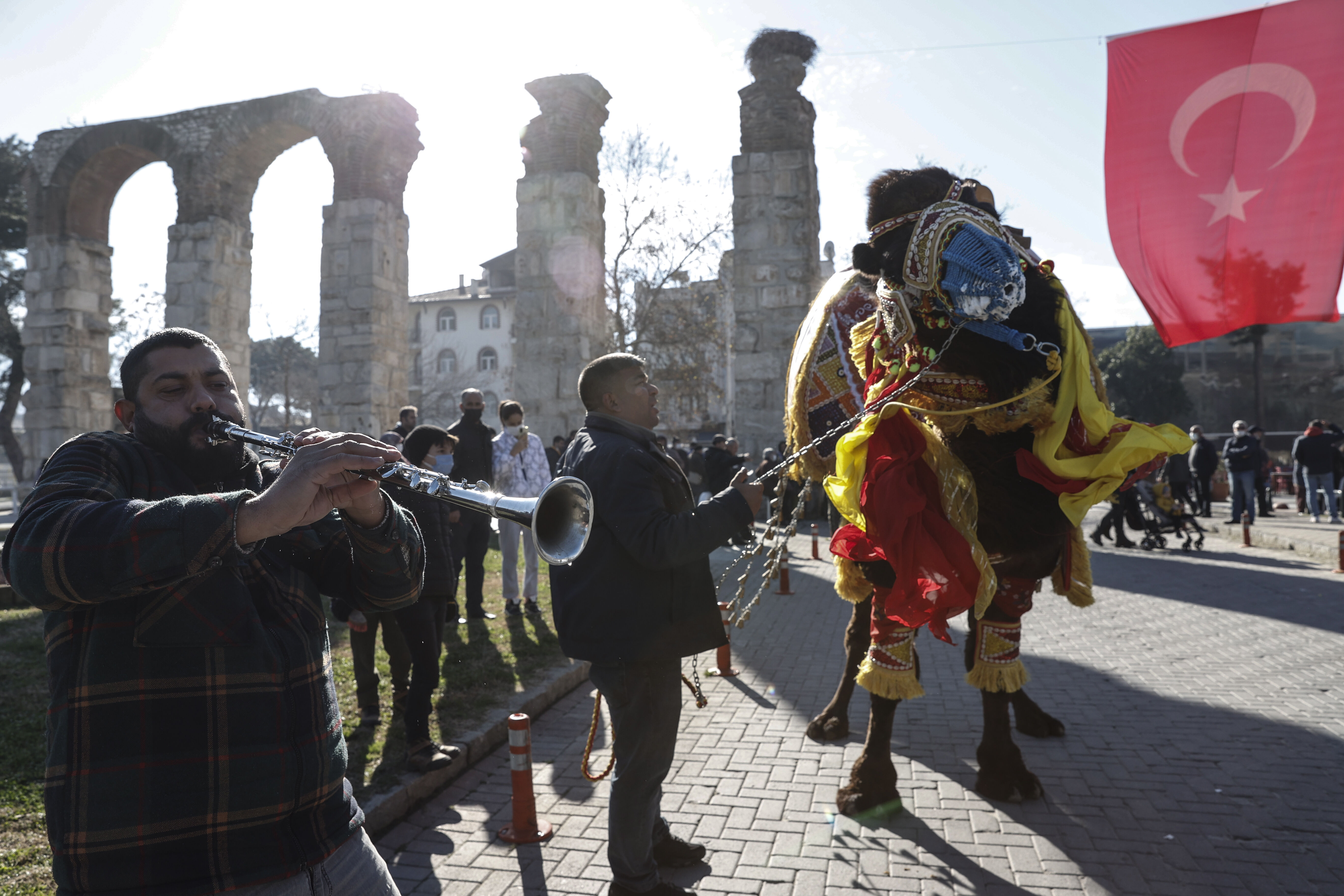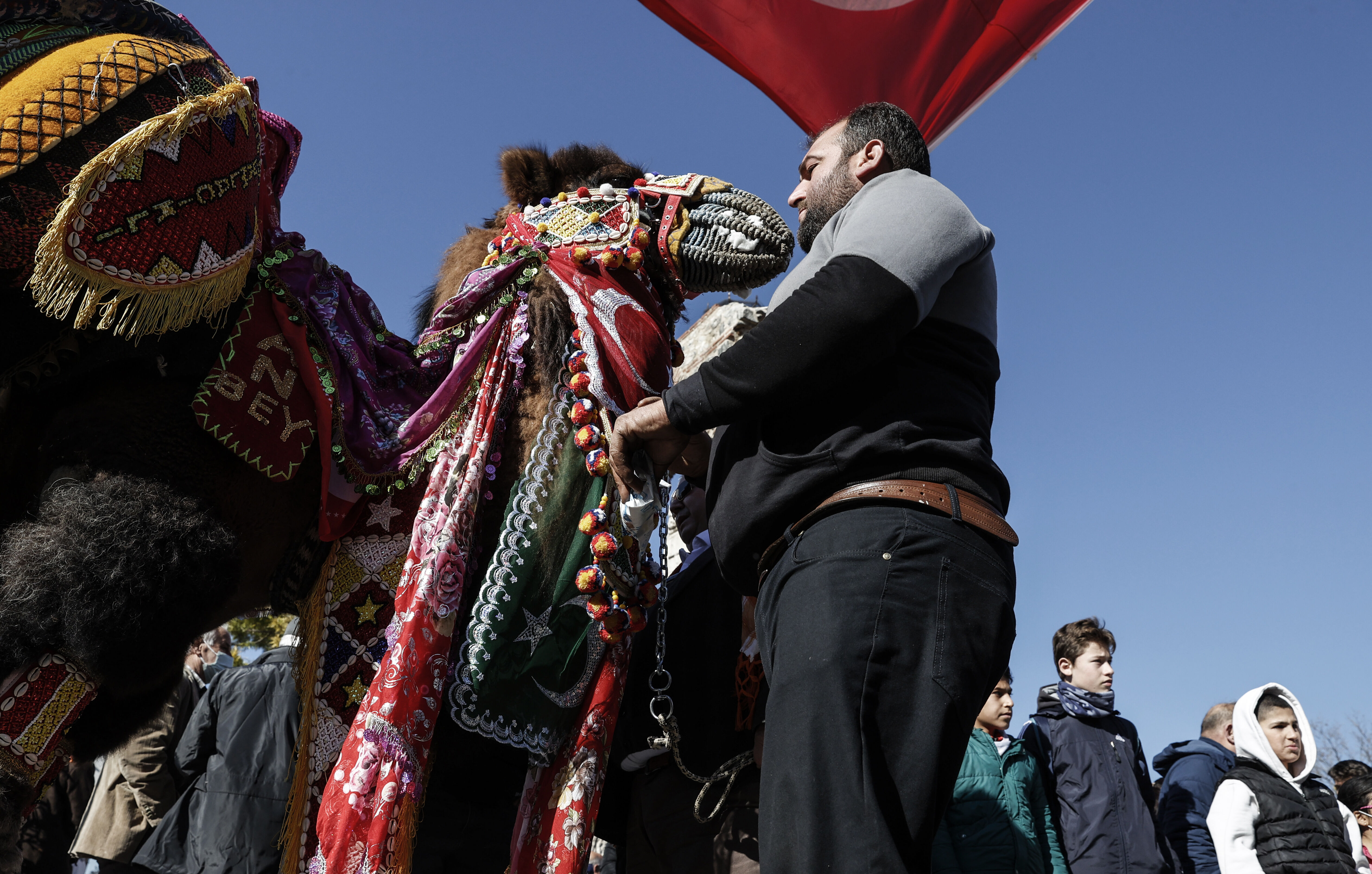 Kortej yürüyüşüyle renklenen meydanda develer tek tek boy gösterdi.