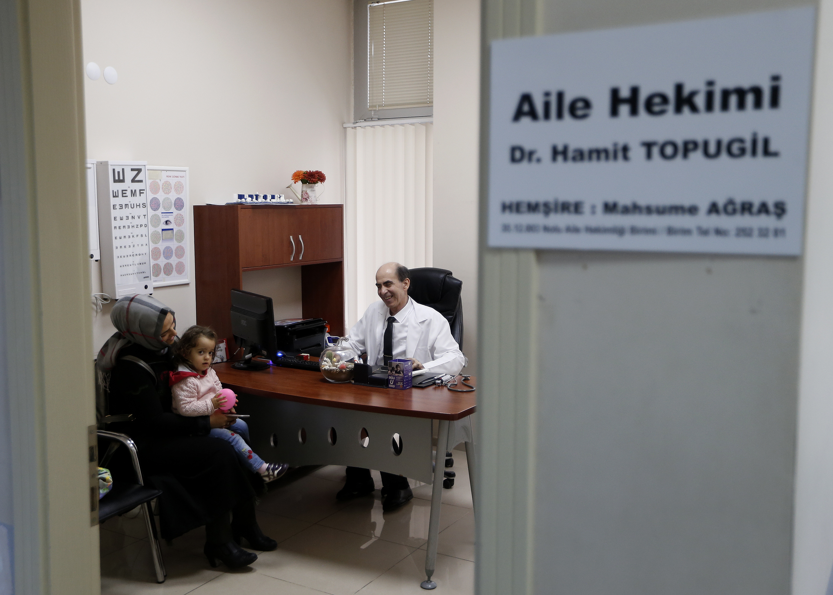 Balçova'daki evinden arabasıyla Gaziemir'de çalıştığı aile sağlığı merkezine gelen bir çocuk babası Topugil'i kapıda 25 yıldır yanından hiç ayrılmayan hemşire Mahsume Ağraş karşılıyor. Hemşiresinin yardımı ile beyaz önlüğünü giyen engelli doktor, hastalarıyla kurduğu iletişimle dikkati çekiyor.