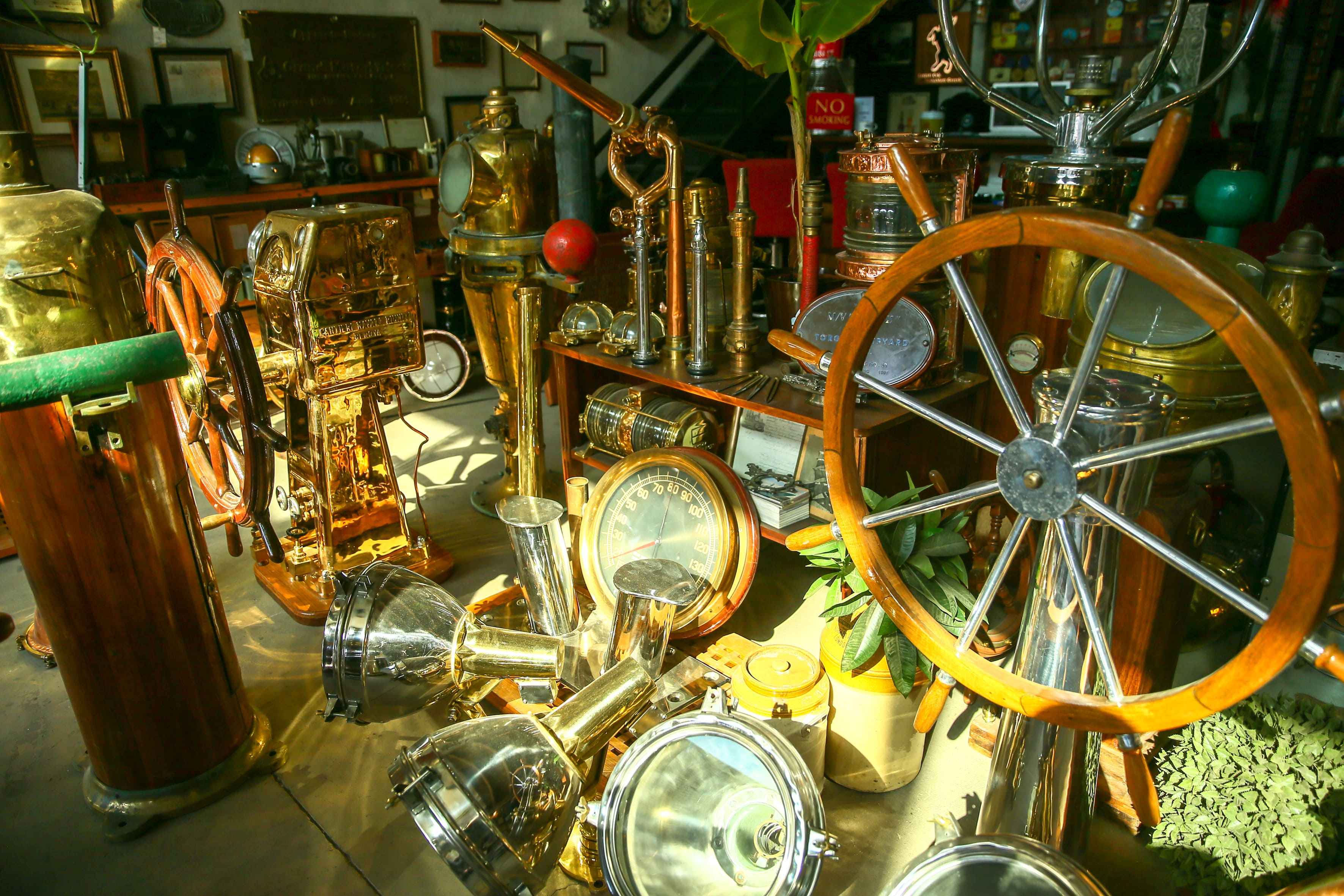 Ömrünü tamamlayan gemilerden çıkarılan dümen, pusula, seyir feneri gibi araç ve gereçler, restore edildikten sonra süs eşyası olarak satışa sunuluyor.