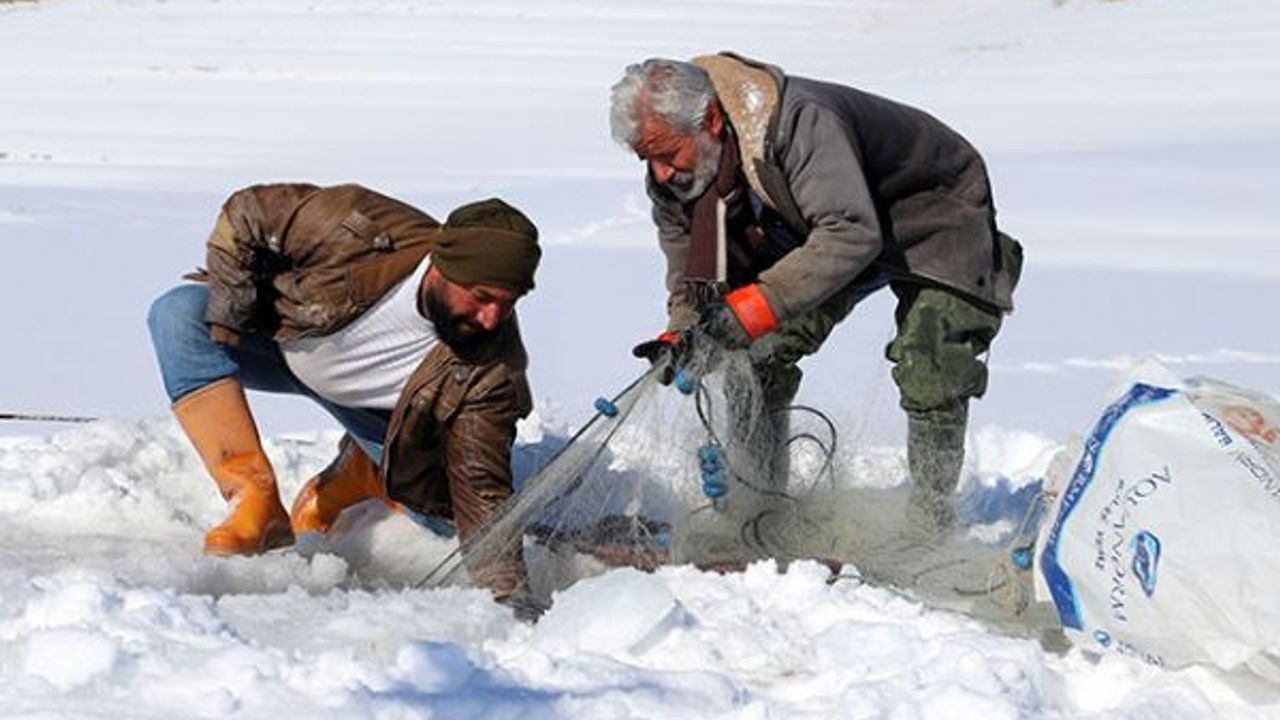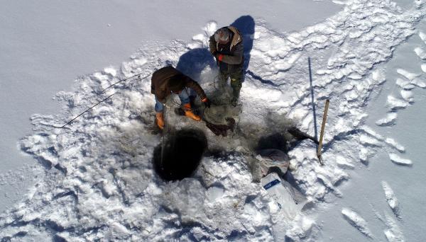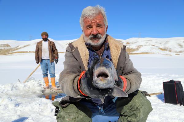 Yaklaşık 25 yıldır baraj gölünde avlandığını söyleyen balıkçı Hikmet Doğal, yazın kayıkla açılıp, kışın buzları kırarak avladıklarını söyledi. Göldeki buzları kazma kürek kullanarak kırdıklarını anlatan Doğal, "Baraj gölüne attığımız ağların uçlarına işaretler koyuyoruz. Bu sayede göl buzlansa da ağımızın yerini kolayca bulabiliyoruz. Buz tutan gölde koyduğumuz işaretlerin bulunduğu noktaları kazma ve kürekle kırıyoruz. Ağın bir ucuna ip bağlayıp diğer ucundan çekiyoruz. Bu sayede balık dolu ağı çekerken, ikinci defa suların altına göndermek için ipi kullanıyoruz. Bazen ağımız dolu geliyor bazen de hiç yakalayamadığımız oluyor. Haftada birkaç kez avlanma imkanımız oluyor" dedi.