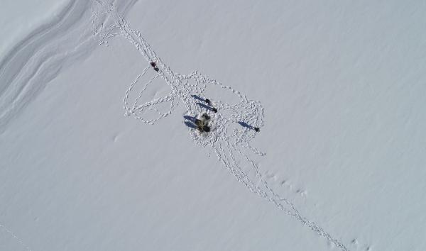 Van'ın Gürpınar ilçesindeki balıkçılar, yüzeyi tamamen buz tutan Zernek Baraj Gölü'nde Eskimo usulü balık avlayarak geçimini sağlıyor.