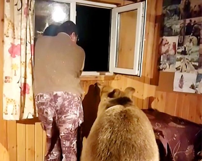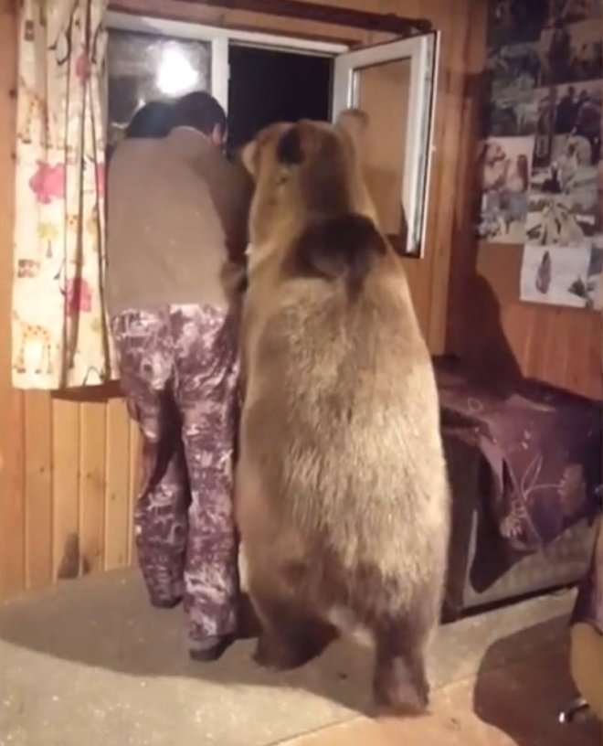 Moskova bölgesindeki bir evde aile ile birlikte yaşayan 2 yaşındaki bozayının, sahibiyle kucak kucağa pencereden dışarı baktığı video, izleyenleri duygulandırdı.