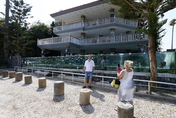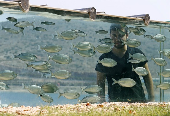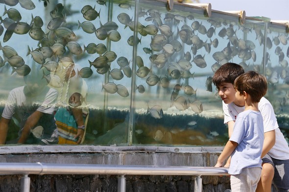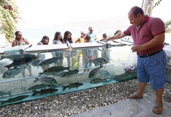 Çeşme'de evinin bahçesini 50 metre uzunluğundaki deniz akvaryumu ile çeviren iş adamı Mehmet Ali Gökçeoğlu, buradaki balıkları yaşatmak için 10 yıldır kanallarla denizden su getiriyor.
