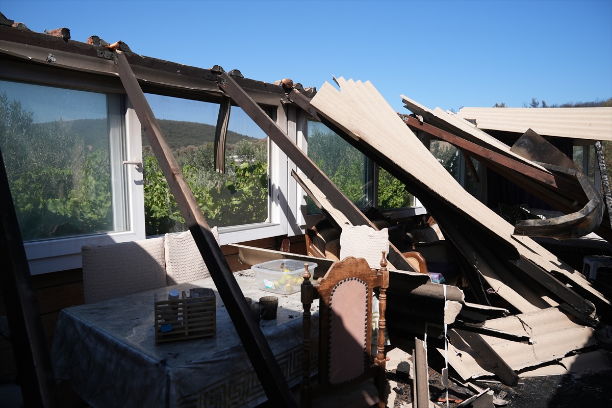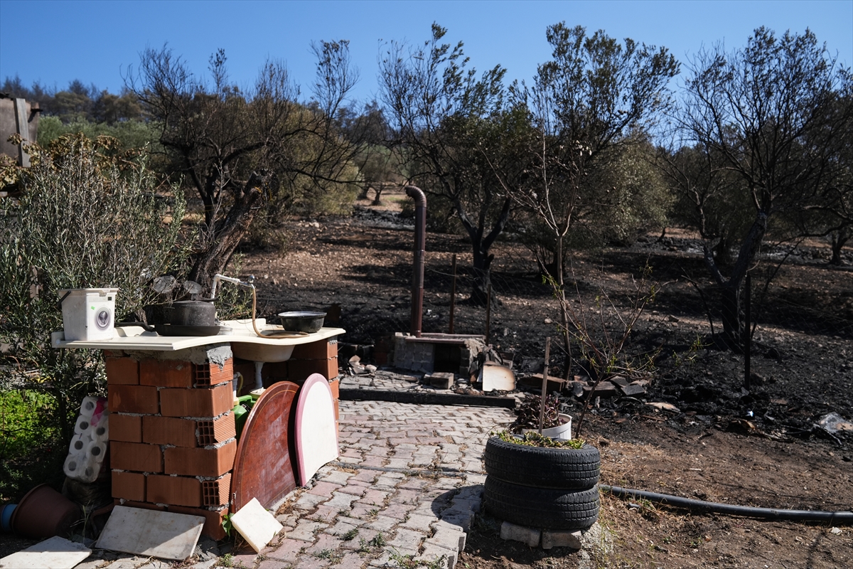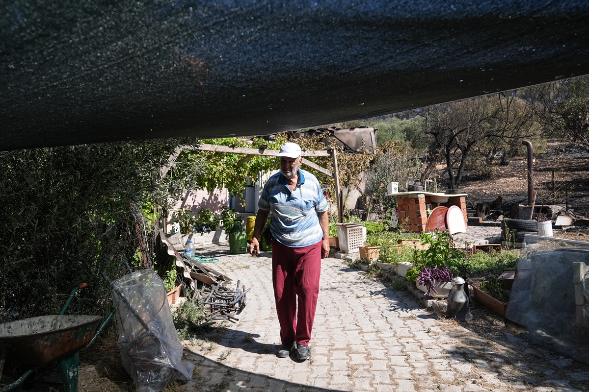 Evi yanan 51 yaşındaki Arzu Ordu, AA muhabirine, anne ve babasıyla birlikte yaşadıklarını, kozalakların patlamasıyla yangının dağın eteklerindeki zeytin ağaçlarına sıçradığını söyledi.